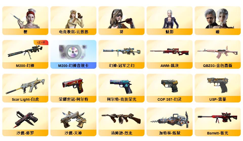 传说圣灵/M200-幻神/幻神音效卡/幻神冠军之幻/幻灵套装/竞技荣光套装/荣耀世冠套装/黑龙音效卡/火麒麟音效卡/毁灭音效卡/雷神音效卡/7烈龙/8炼狱/白虎/雷暴