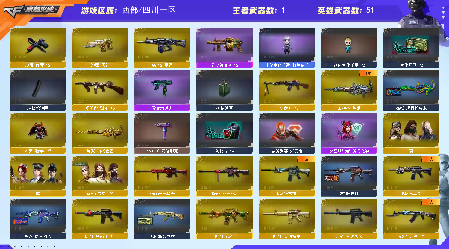 • 游戏区服:穿越火线 / 西部 / 四川一区