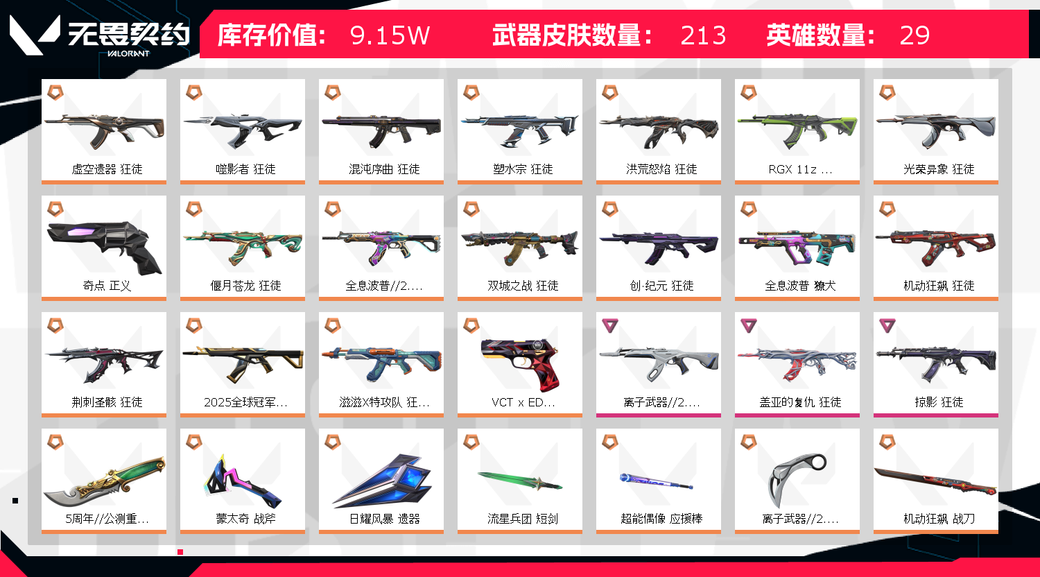 • 皮肤资产价值: 91460