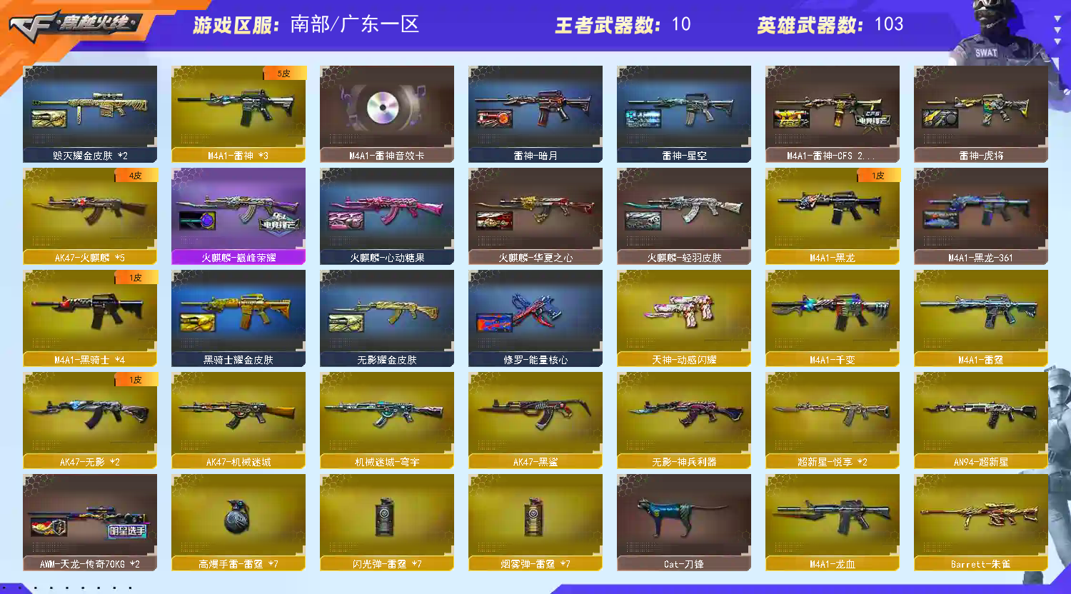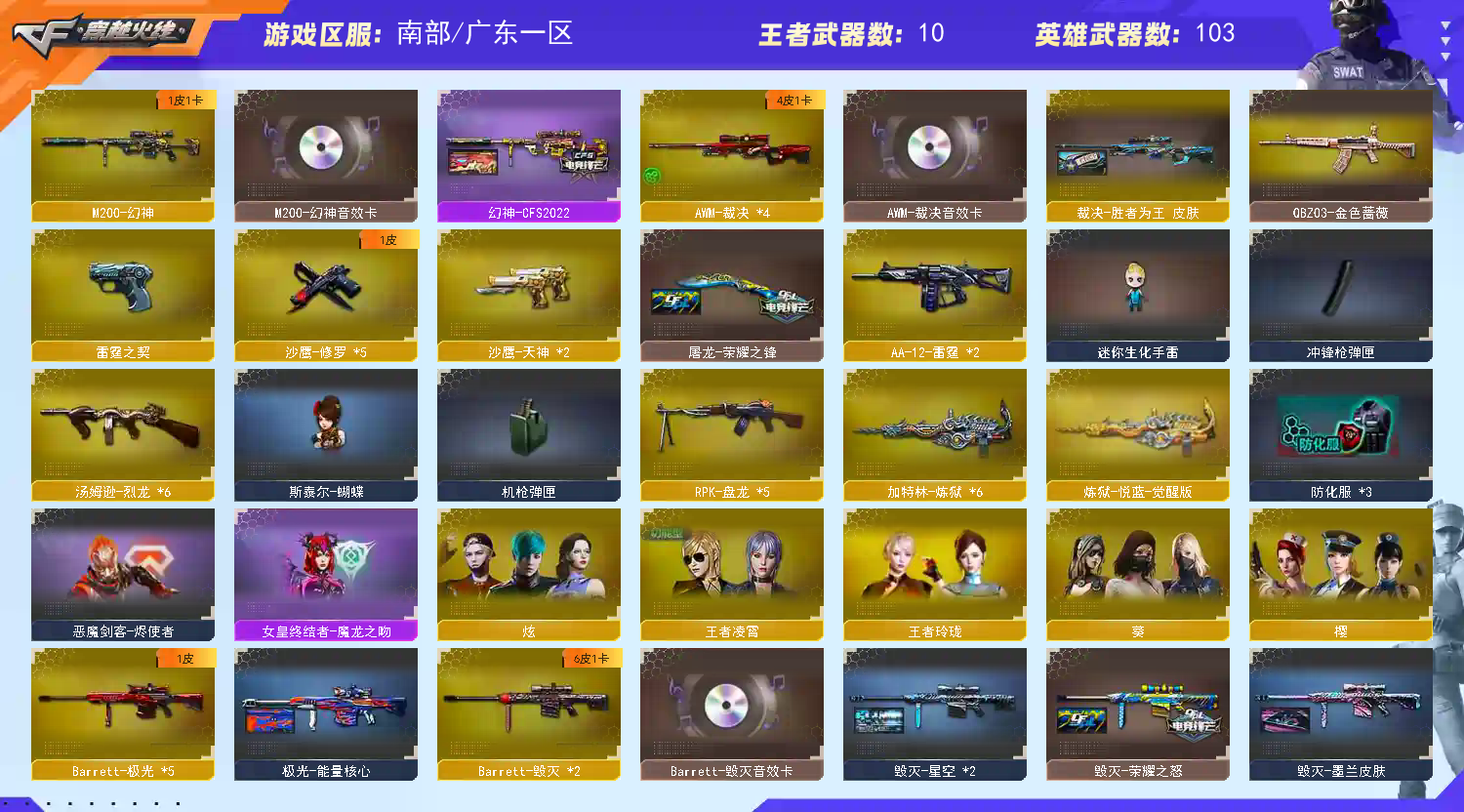 • 游戏区服:穿越火线 / 南部 / 广东一区