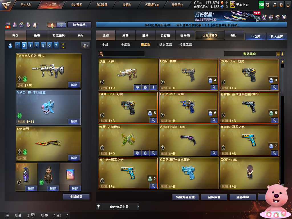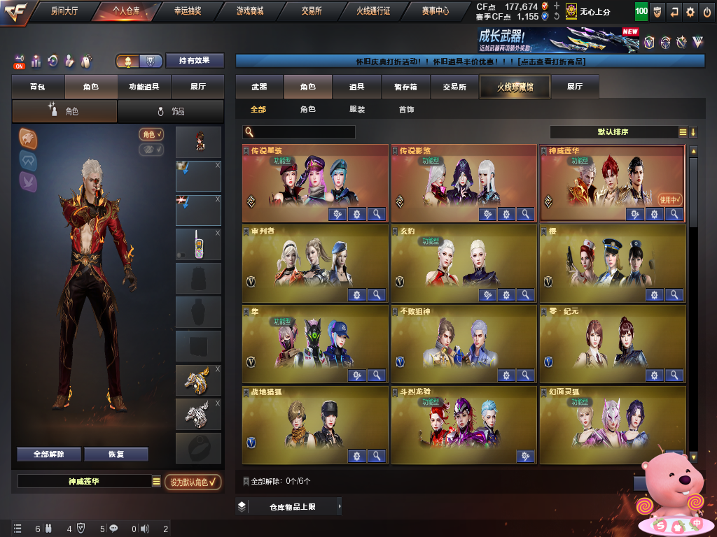 生化T0角色神威莲华,追击T0角色传说影煞,传说星骇,6烈6盘,清道夫蛇影双娇十斯太尔蝴蝶,双泡泡象炼狱+双金翼禅狮炼狱,法玛斯天戎, g36c幻影,八面凌龙,7把蝴蝶刀,白虎,幻神,星神,裁决+音效卡,生化爆破嘎嘎爽,所有道具弹夹拉满,觉得不错的给个好评收藏起来,谢谢! 重要提示: 此号已经在公安局做了虚拟财产登记,如果因为外挂行为导致封号,平台是实名制平台会提供个人信息,不管在哪都能抓住你,最后造成的损失由你或你家人承担。切勿开挂,违法必究,该账号已在公安局备案。到时请及时续租,不要挂机,导致禁赛的一律拉黑处理。;USP-雷暴,柯尔特-荣耀世冠白鲨2023,柯尔特-冠军之特,炽芒蝶刃,传说影煞,传说星骇,隼,