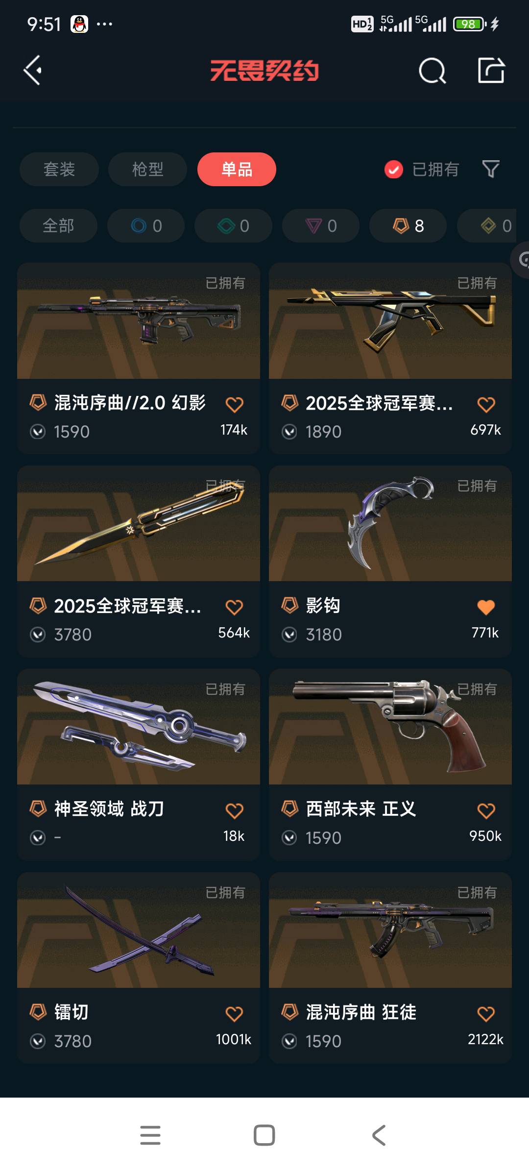 盖亚狂徒/紫阙狂徒/混沌狂徒/猫猫狂徒/25冠军套/堕天狂徒/镭切/影钩/盖亚鬼魅/西部正义/离子狂