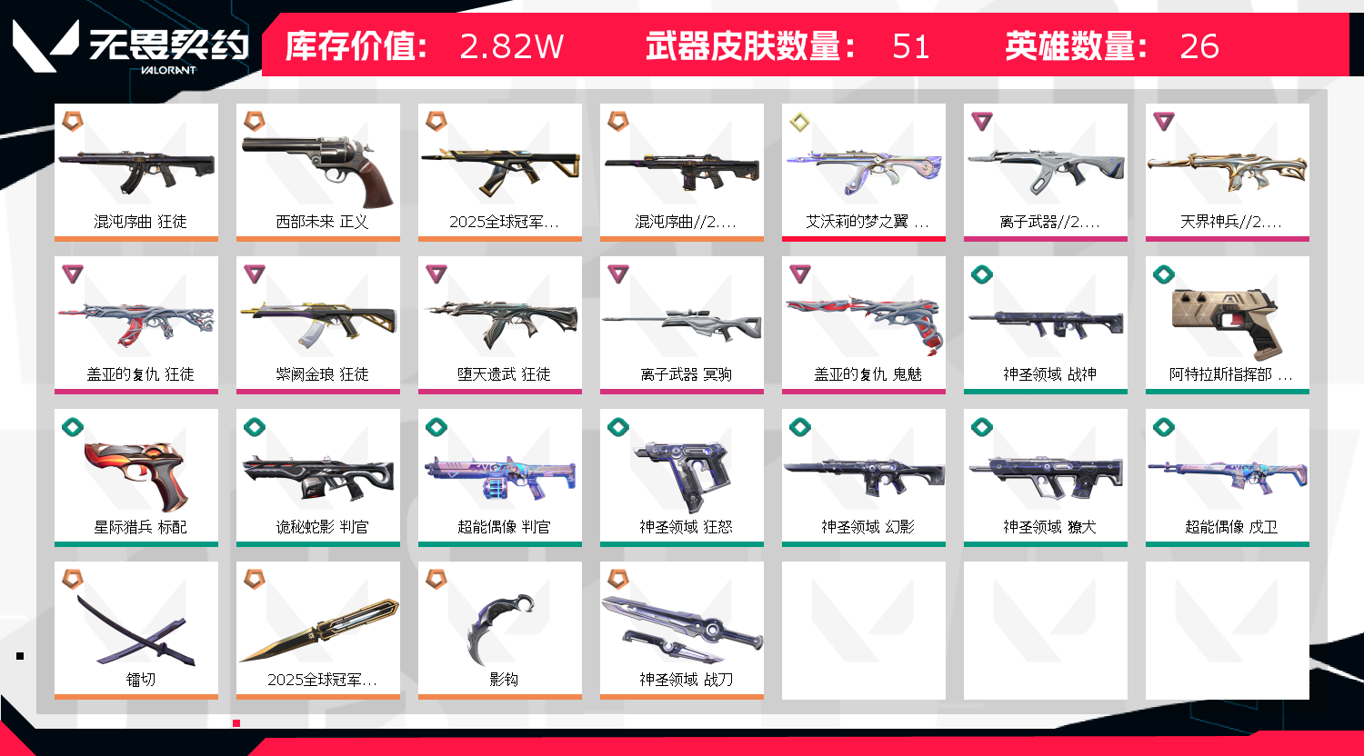 • 皮肤资产价值: 28220