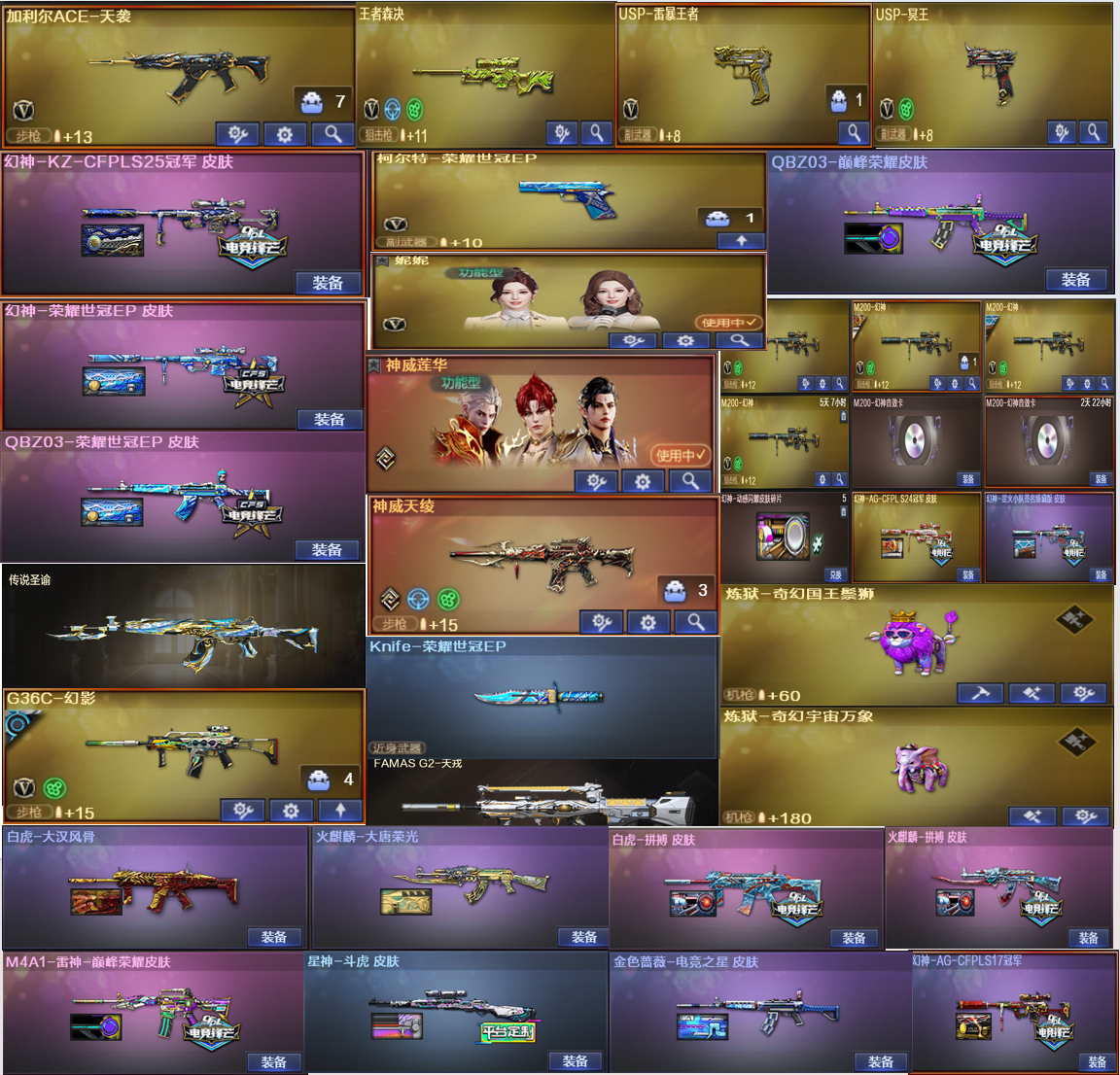 800V,虹儿,九霄圣角,神威天绫,神威莲华量子之心,ぃ❤️传说艾丽莎,冠军之特,冠军之刃,炼狱国王鬓狮,幻影,梅雀衔霜,量子聚变,幻神kz皮肤,天袭,神工天巧套装,妮妮,EP套装,巅峰荣耀,拼搏,五战队投影,usp冥王,荆棘,沙漠玫瑰,传说圣谕传说星骇,炼狱奇幻宇宙万象,王者冰锋,王者玄武,裁决音效卡。幻神音效卡法玛斯定军扬威玉面羞花qbz03cfs2024云龙套装虎牙毁灭虎牙黑骑士斗鱼炼狱竞技荣光幻神星火小队幻兽套巅峰荣耀斯太尔蝴蝶6烈6盘炼狱荣耀冠军AG王者星神生化爆破双全装;USP-雷暴,柯尔特-无冕之王,USP-雷暴王者,柯尔特-冠军之特,炽芒蝶刃,Knife-冠军之刃,沙漠玫瑰,