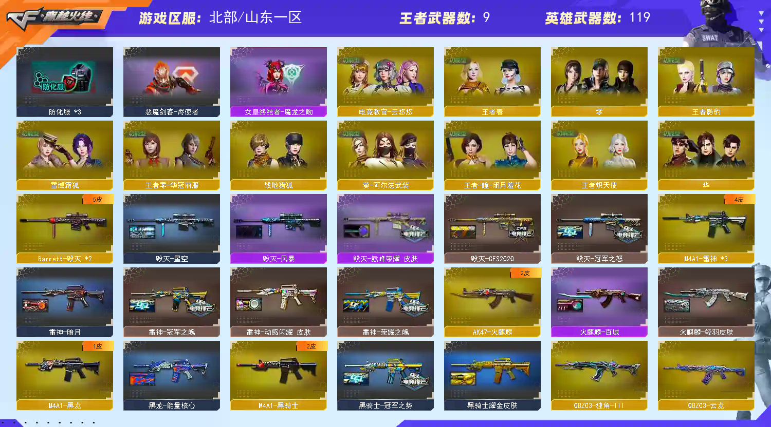 • 游戏区服:穿越火线 / 北部 / 山东一区