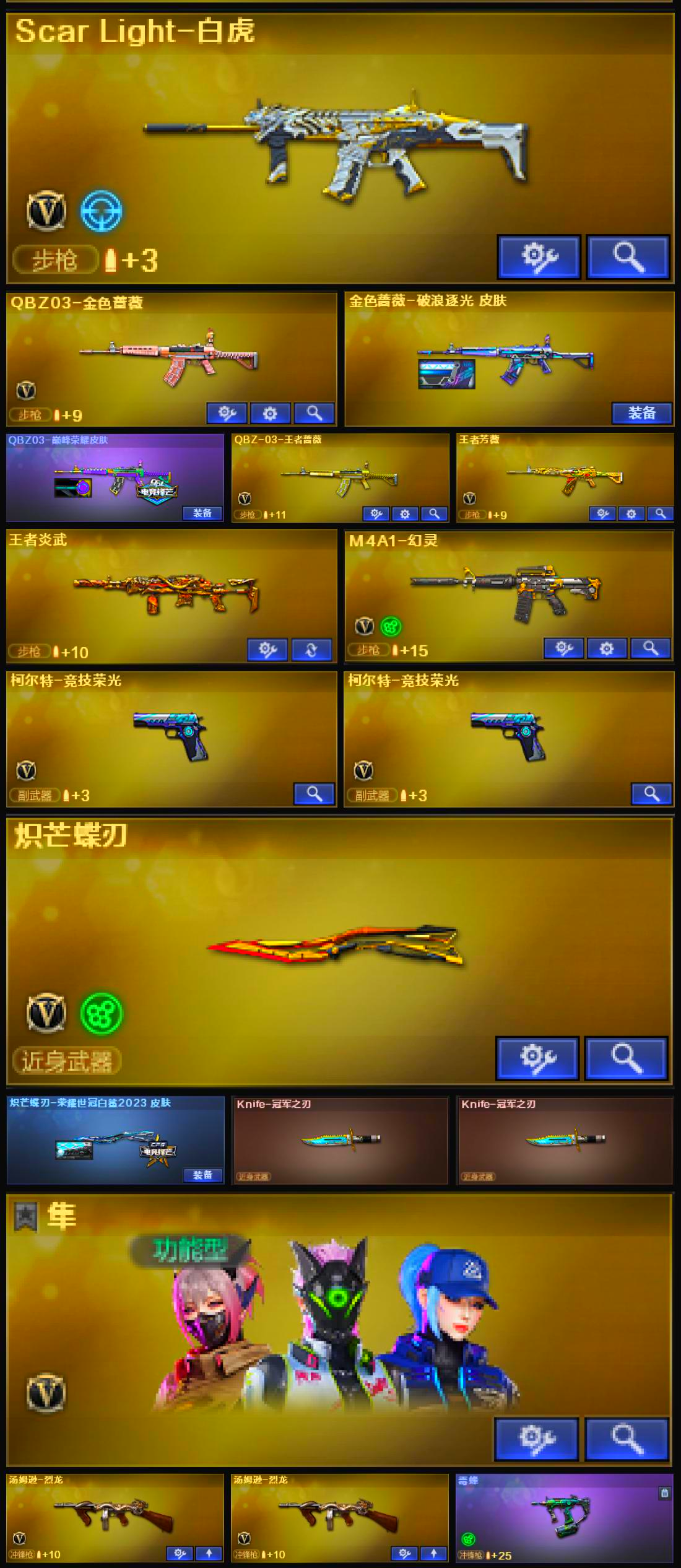 小双全♥灵眸幻神带皮♥星神带皮裁决♥白虎qbz带皮♥王者炎武蝴蝶刀双冠军之刃隼毒蜂主流带皮带卡;炽芒蝶刃,Knife-冠军之刃,隼,QBZ03-金色蔷薇,M200-幻神,Scar Light-白虎,传说灵眸,
