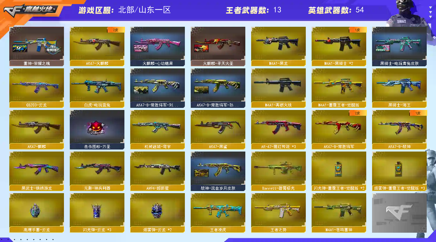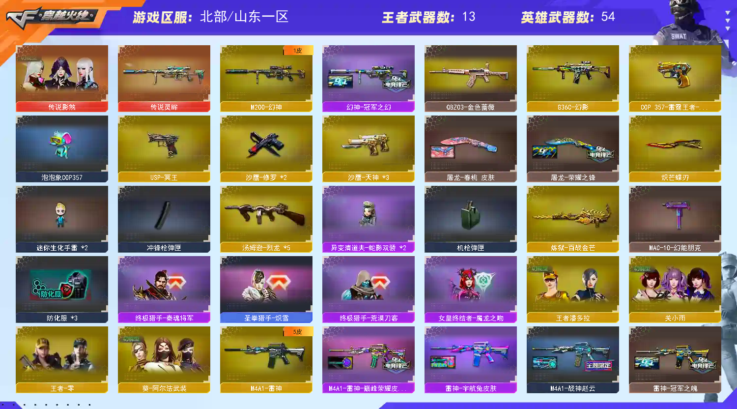 • 游戏区服:穿越火线 / 北部 / 山东一区