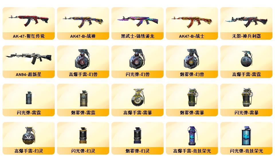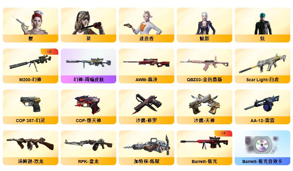M200-幻神/幻神周瑜/堕天神套装/幻灵套装/雷霆王者套装/白虎/qbz/6盘龙/8烈龙/极光音效卡/毁灭音效卡