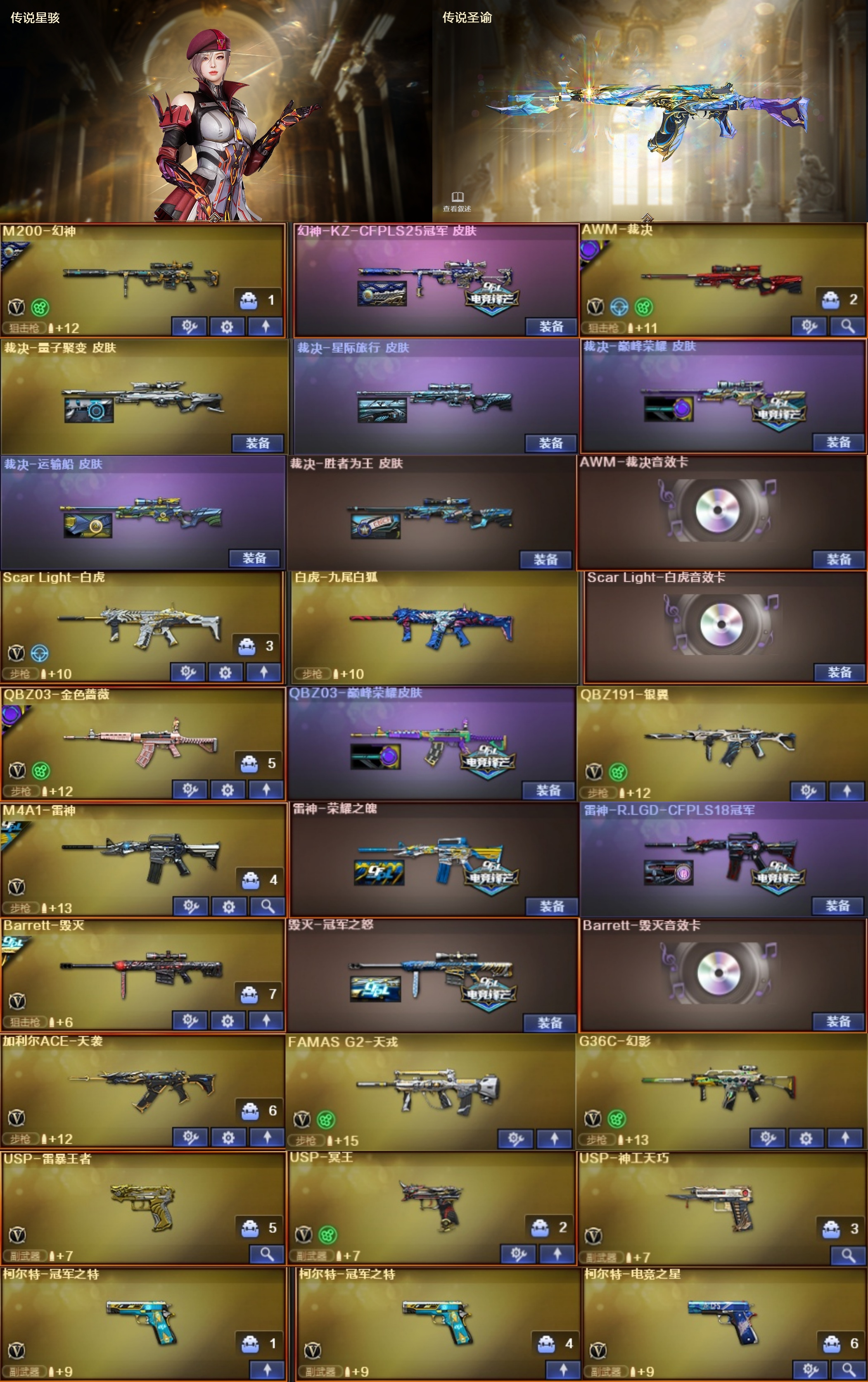 46豆/9号【北部】传说星骇+圣域⭐幻神kz⭐裁决套白虎+音⭐天袭天戎幻影usp*3柯尔特*3蝴蝶刀