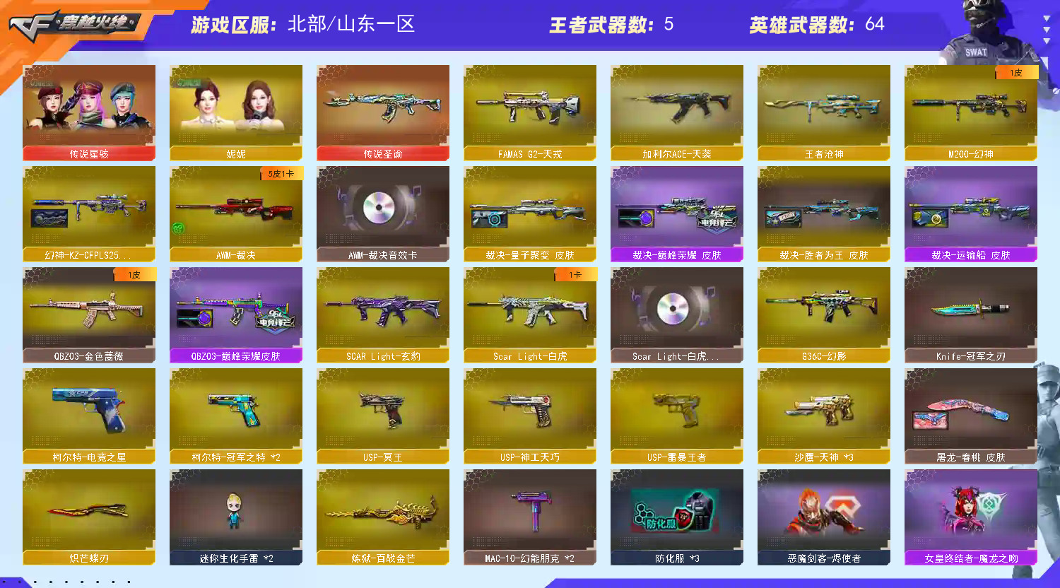 • 游戏区服:穿越火线 / 北部 / 山东一区