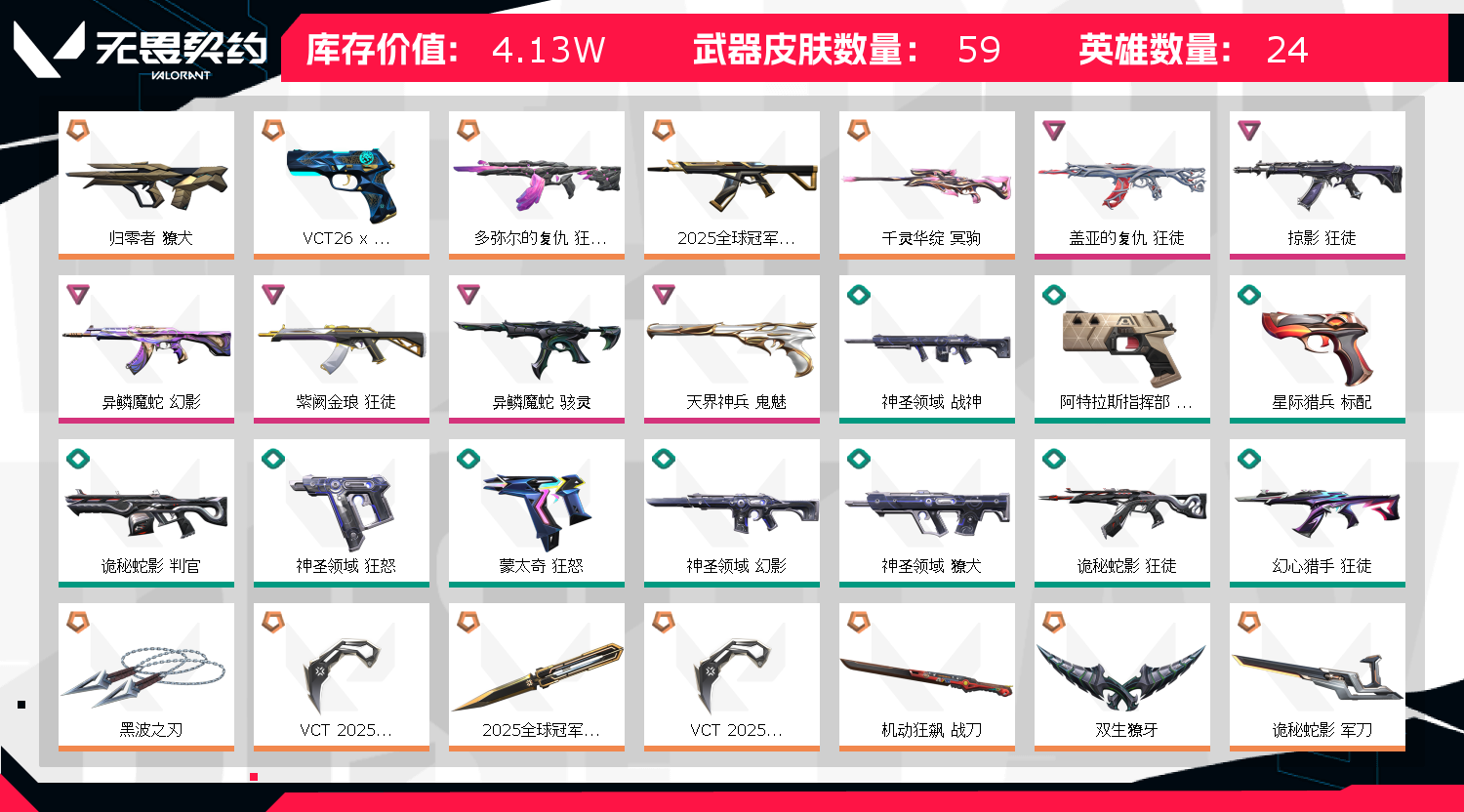 • 皮肤资产价值: 41340