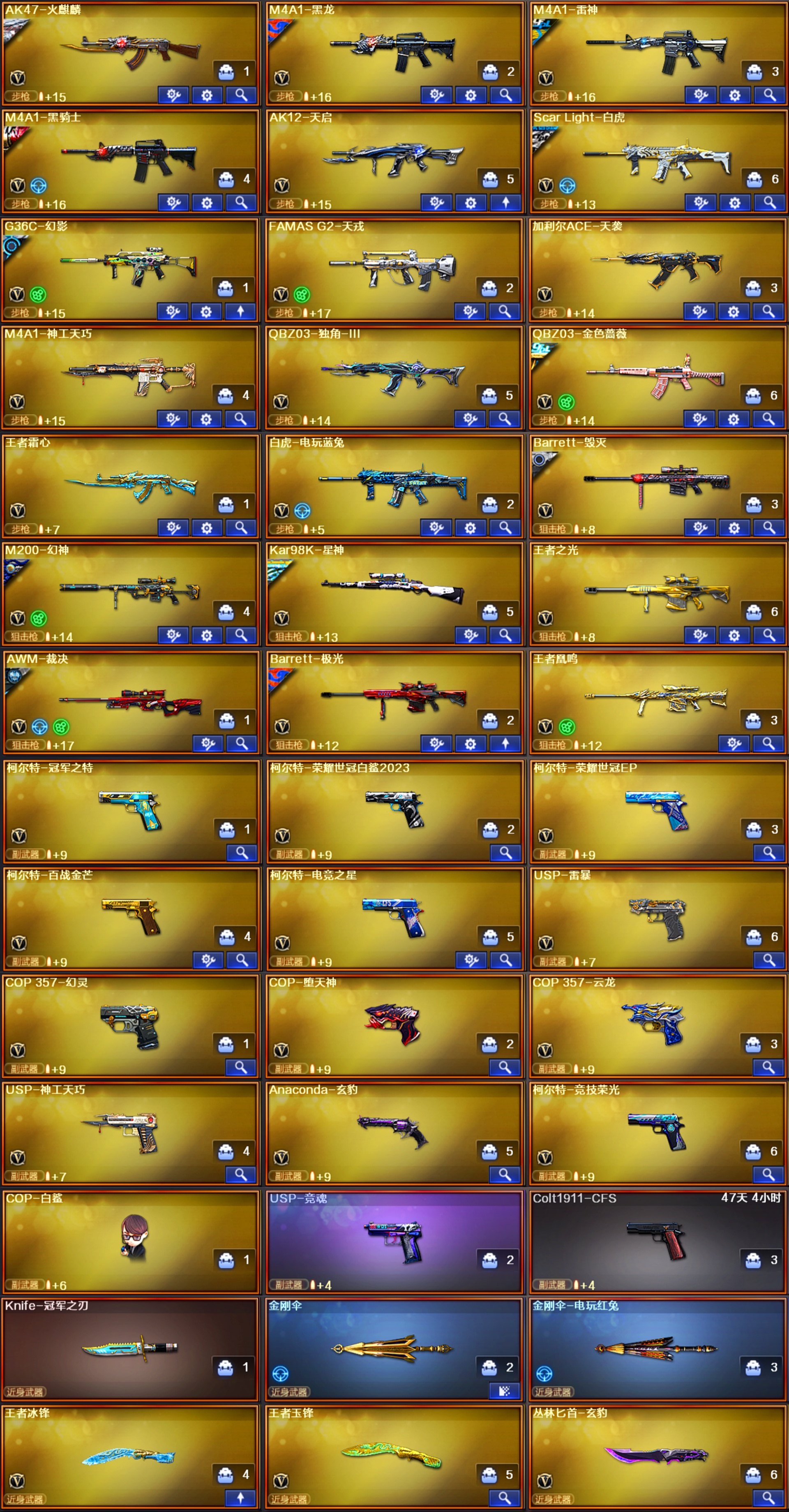 幻影加利尔天戎5柯尔特♥幻神音效卡5皮KZ皮EP♥裁决音效卡2皮♥蔷薇6皮星神卡白虎2皮冠军之刃.