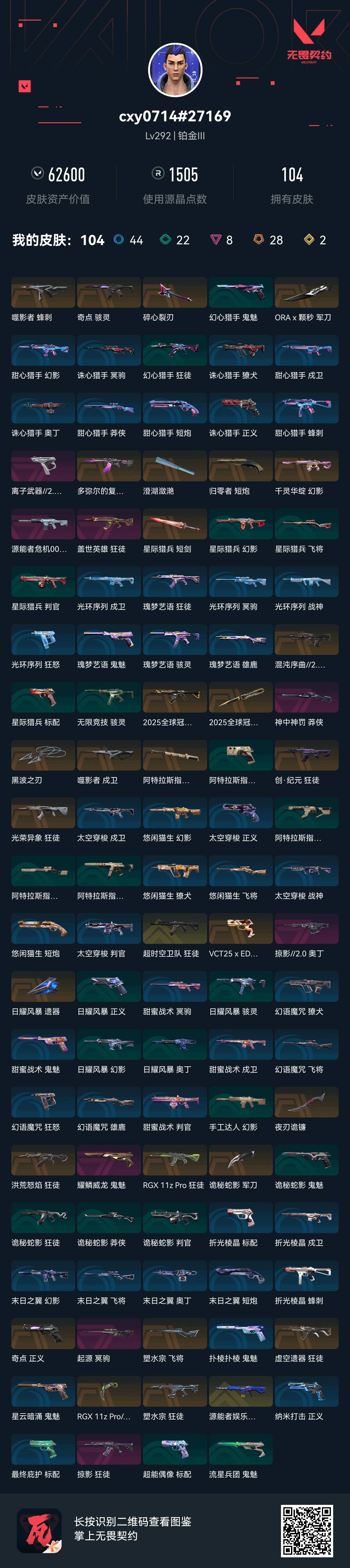 • 皮肤资产价值: 62600