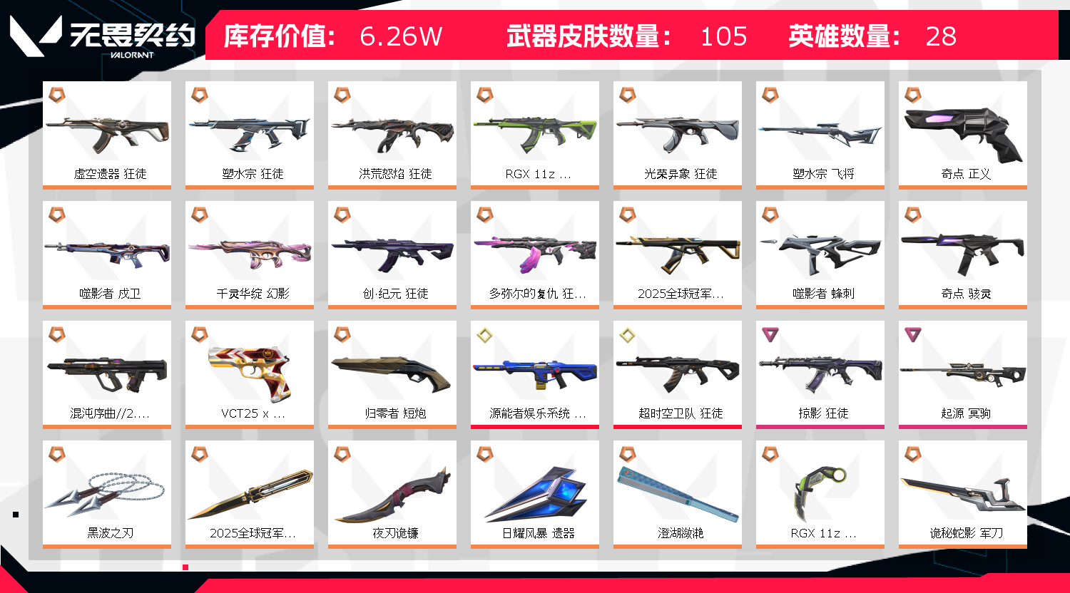 6.2w库存/2025冠军赛套/塑水宗 狂徒/黑波之刃/ORA x 颗秒 军刀/奇点骇灵/千灵华绽