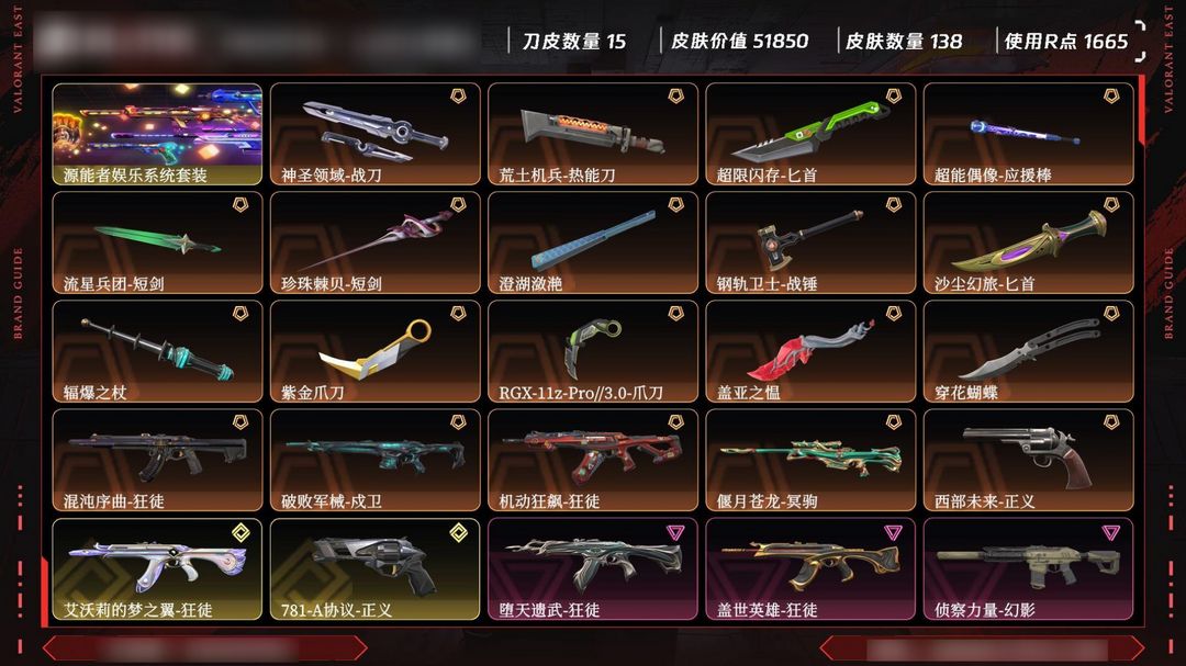 • 武器皮肤数量: 138