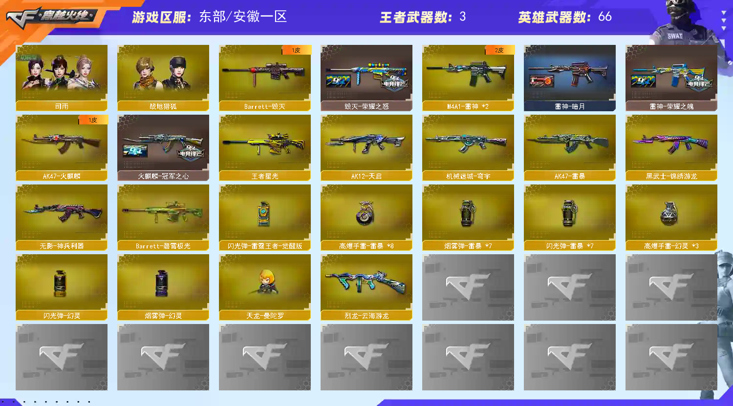 • 游戏区服:穿越火线 / 东部 / 安徽一区