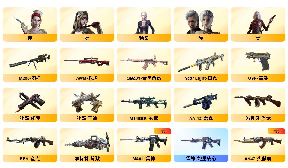 传说灵眸+M200幻神/机械姬白虎玄武朱雀雷暴套装QBZ王者芳薇潘多拉蝴蝶6烈6盘2音/大唐荣光耀金毁灭
