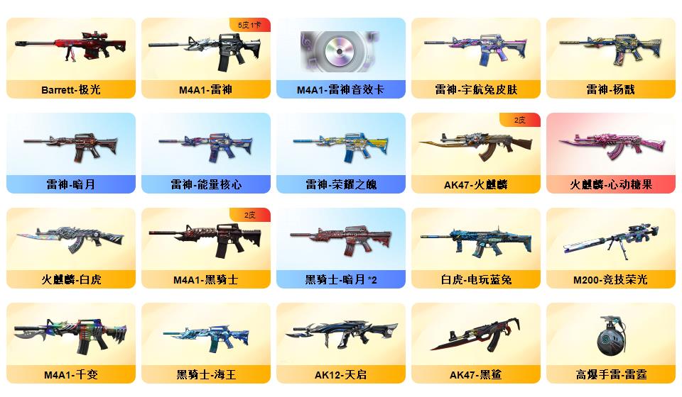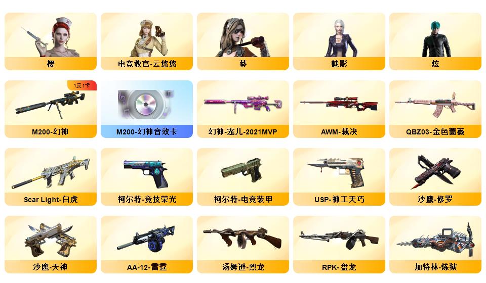 传说圣灵/传说梦魇/M200-幻神/幻神纸灯龙/幻神宠儿/幻神音效卡/竞技荣光套装/云龙套装/毁灭音效卡/雷神音效卡/白虎/qbz/6烈龙/