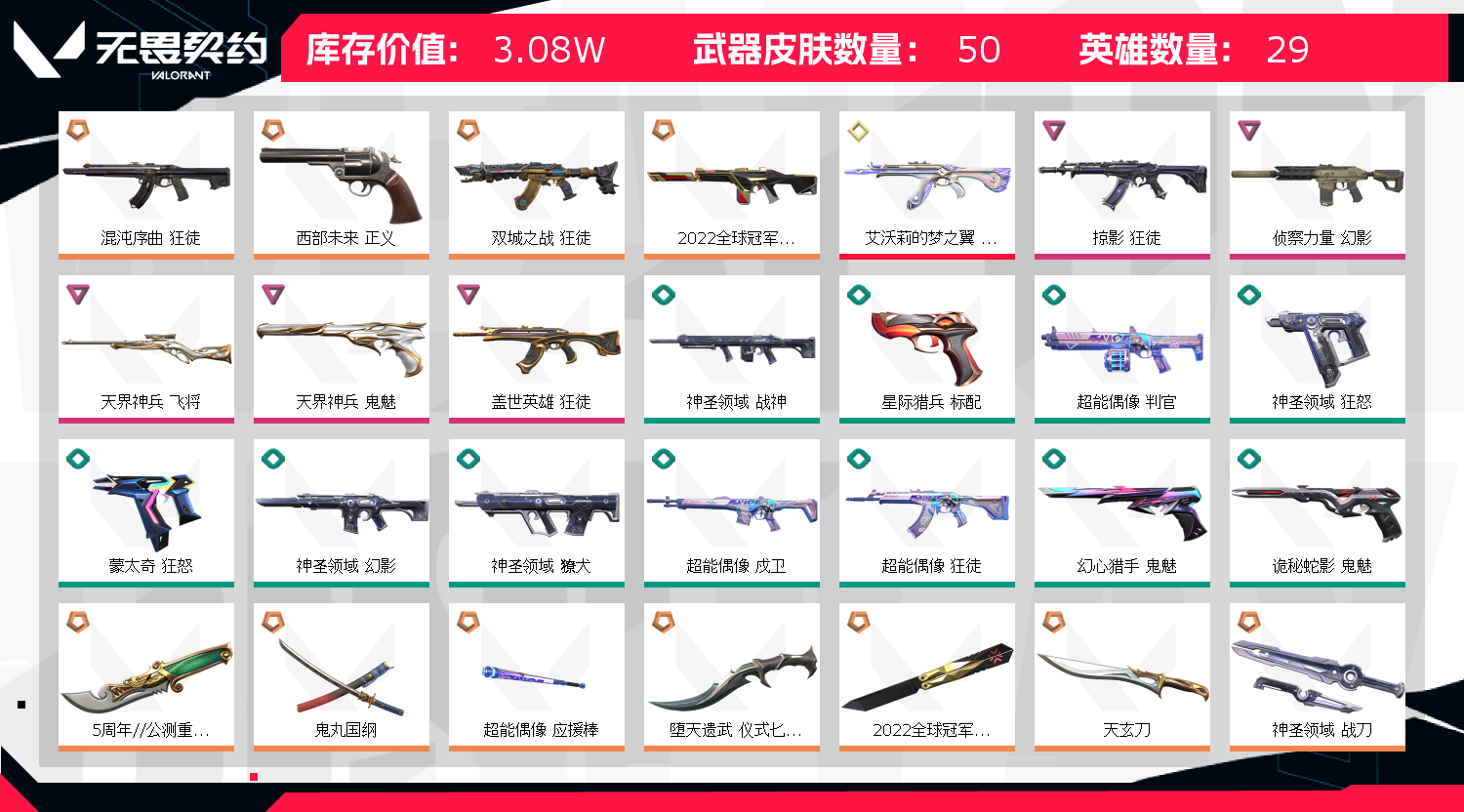 • 皮肤资产价值: 30800