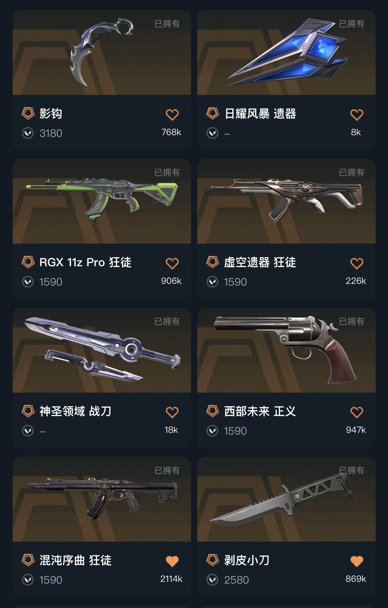 首页 > 租号大厅 > 无畏契约-wegame > wegame/wegame > 冻结秒解⚡影钩⚡显卡狂徒⚡混沌序曲狂徒⚡西部未来✨般若假面2.0套⚡虚空遗器狂徒⚡剥皮小刀⚡