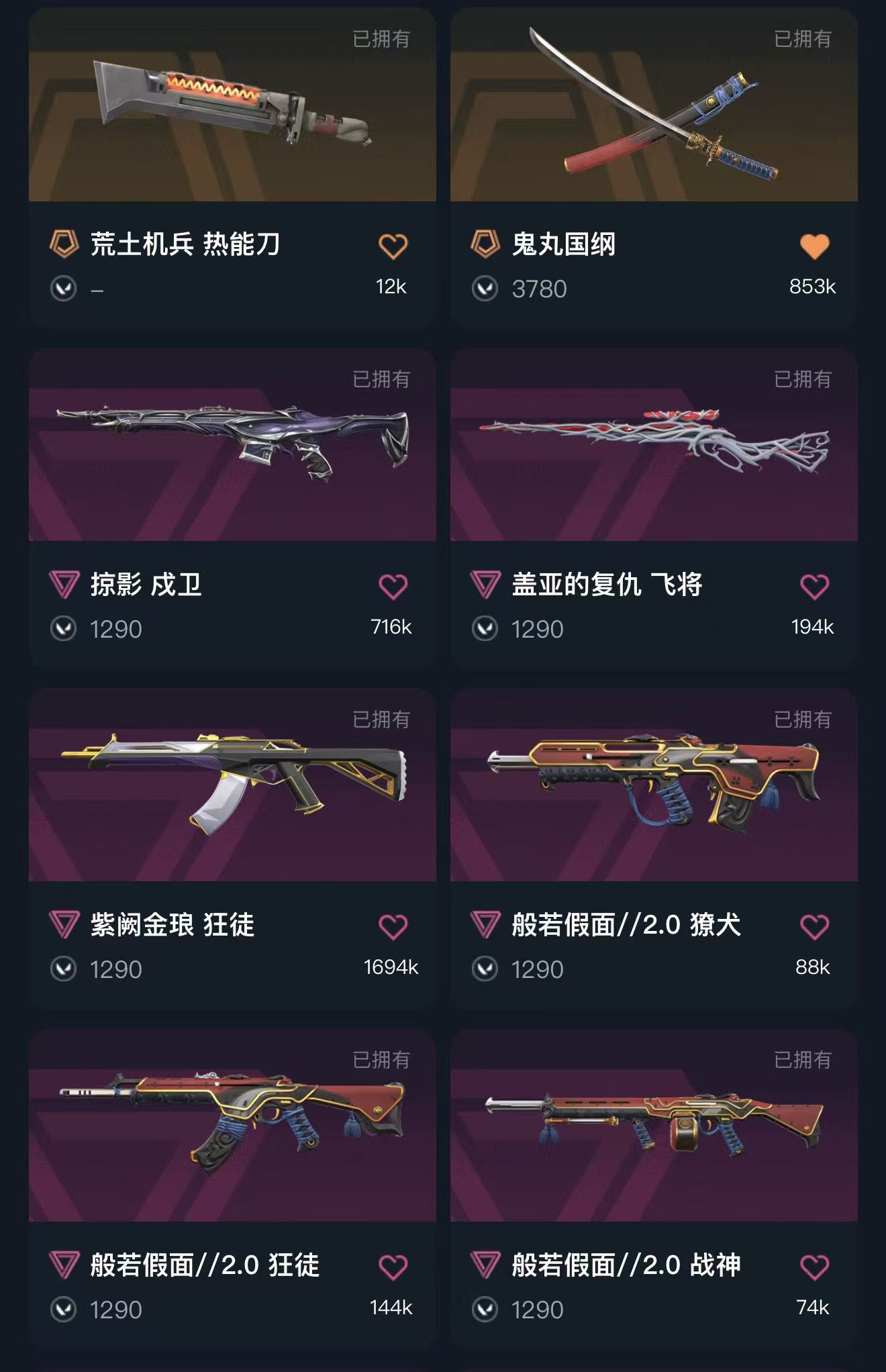 冻结秒解⚡影钩⚡显卡狂徒⚡混沌序曲狂徒⚡西部未来✨般若假面2.0套⚡虚空遗器狂徒⚡剥皮小刀⚡