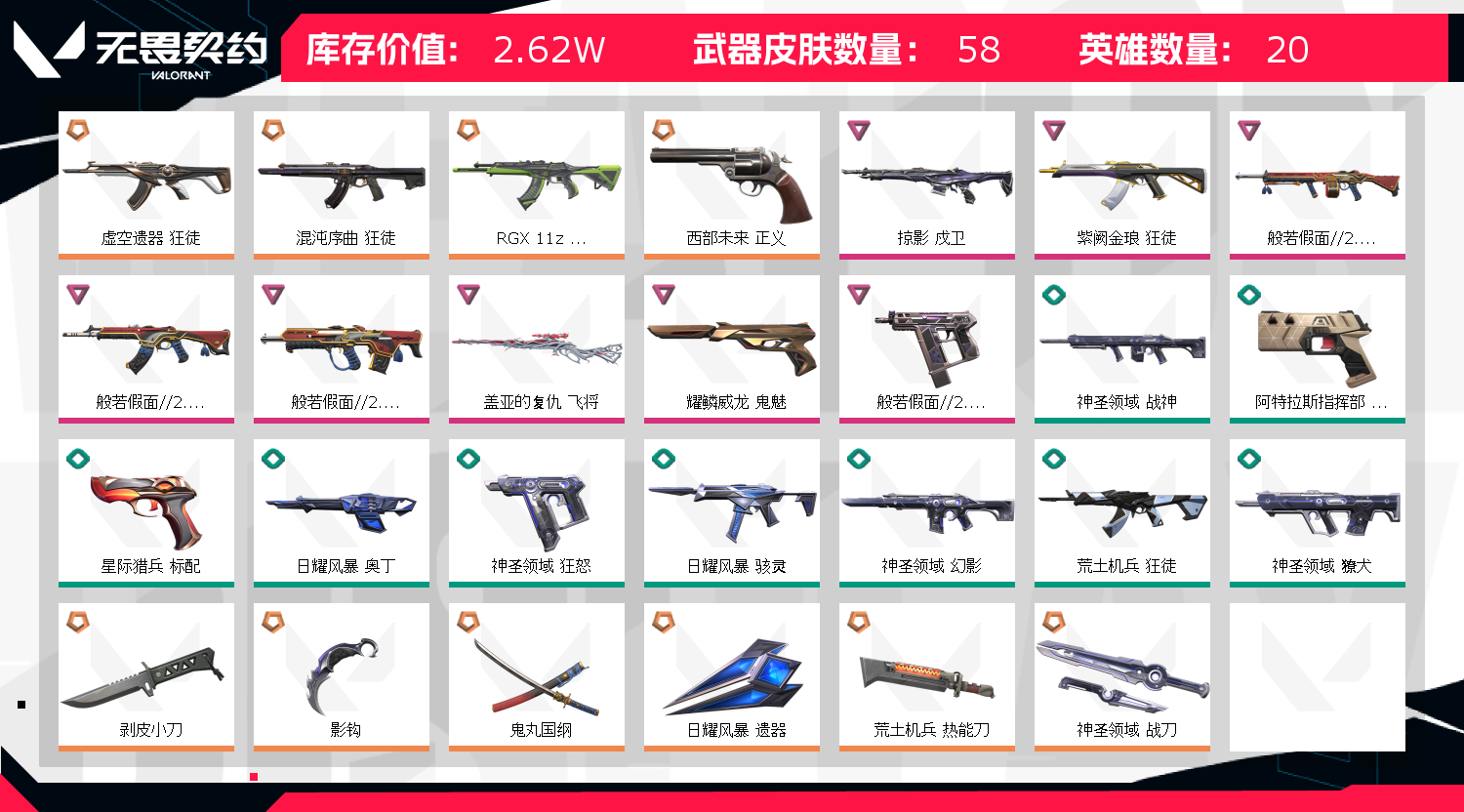 • 皮肤资产价值: 26220