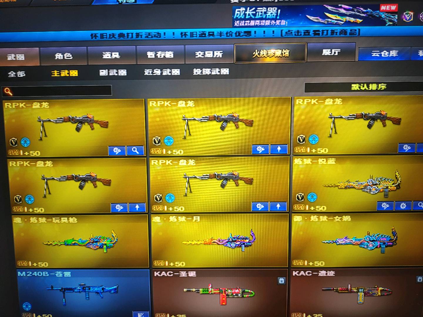 禁止开科技,实名制已备案;炽芒蝶刃,隼,RPK-盘龙,QBZ03-金色蔷薇,M200-幻神,