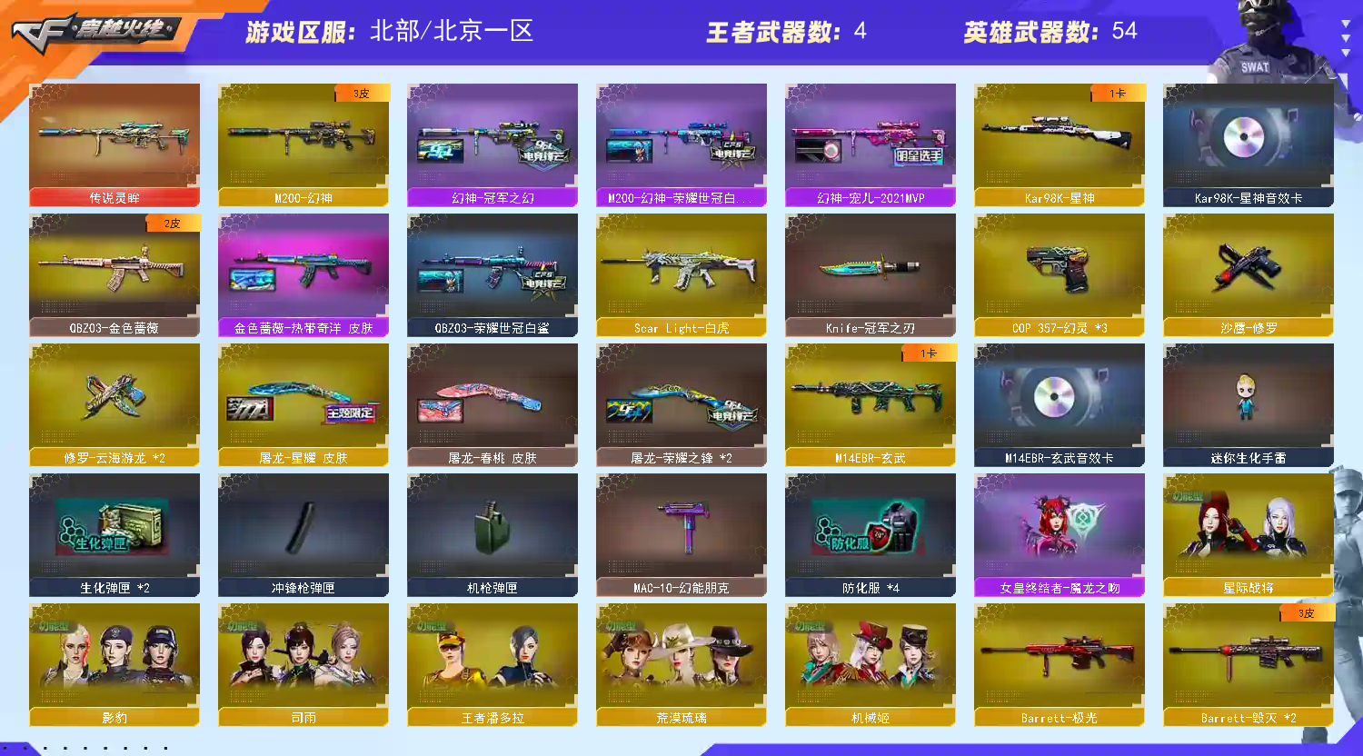 • 游戏区服:穿越火线 / 北部 / 北京一区