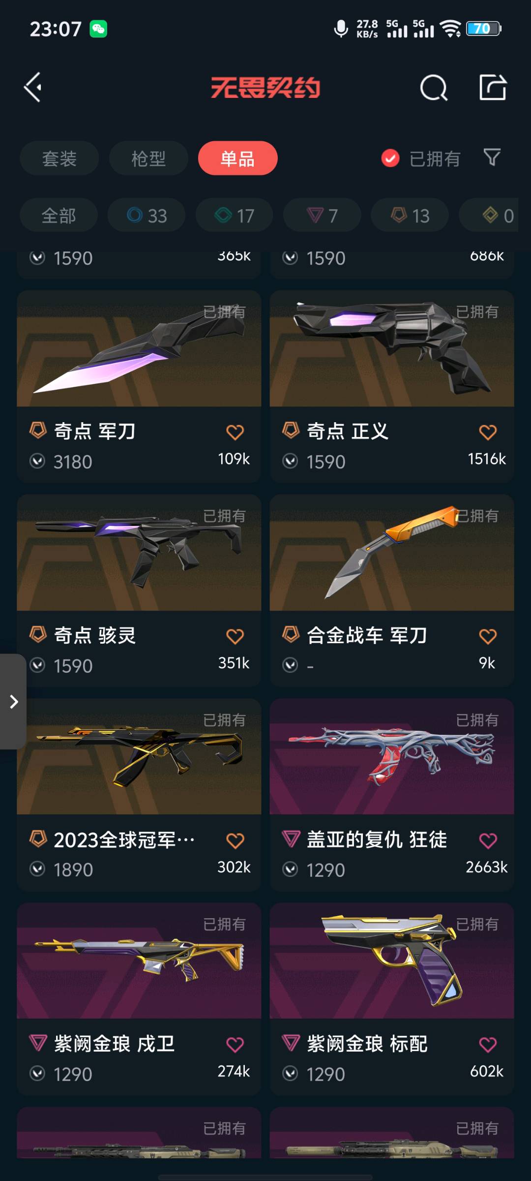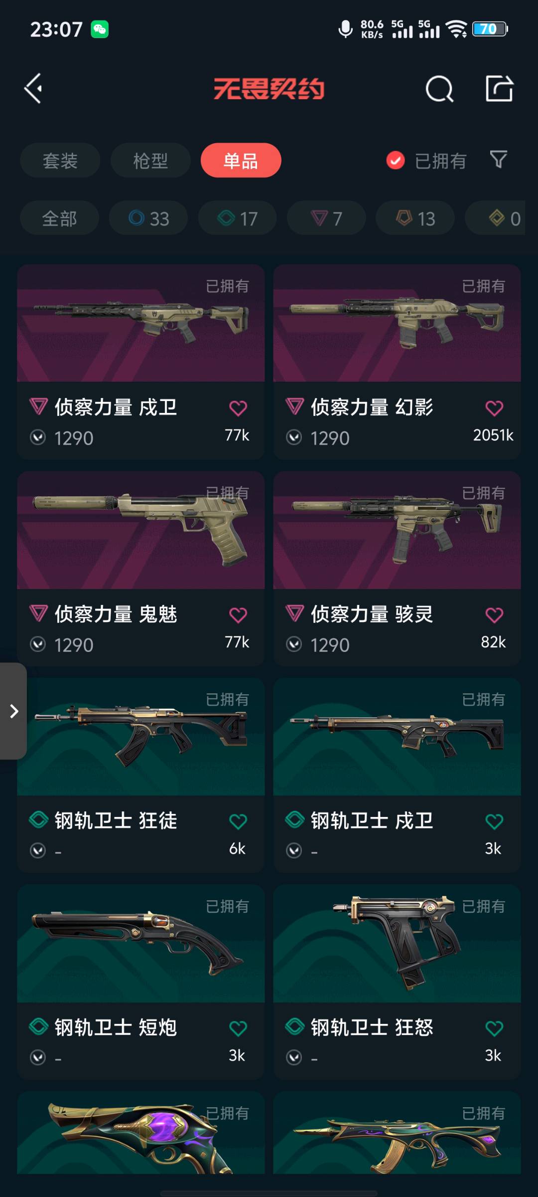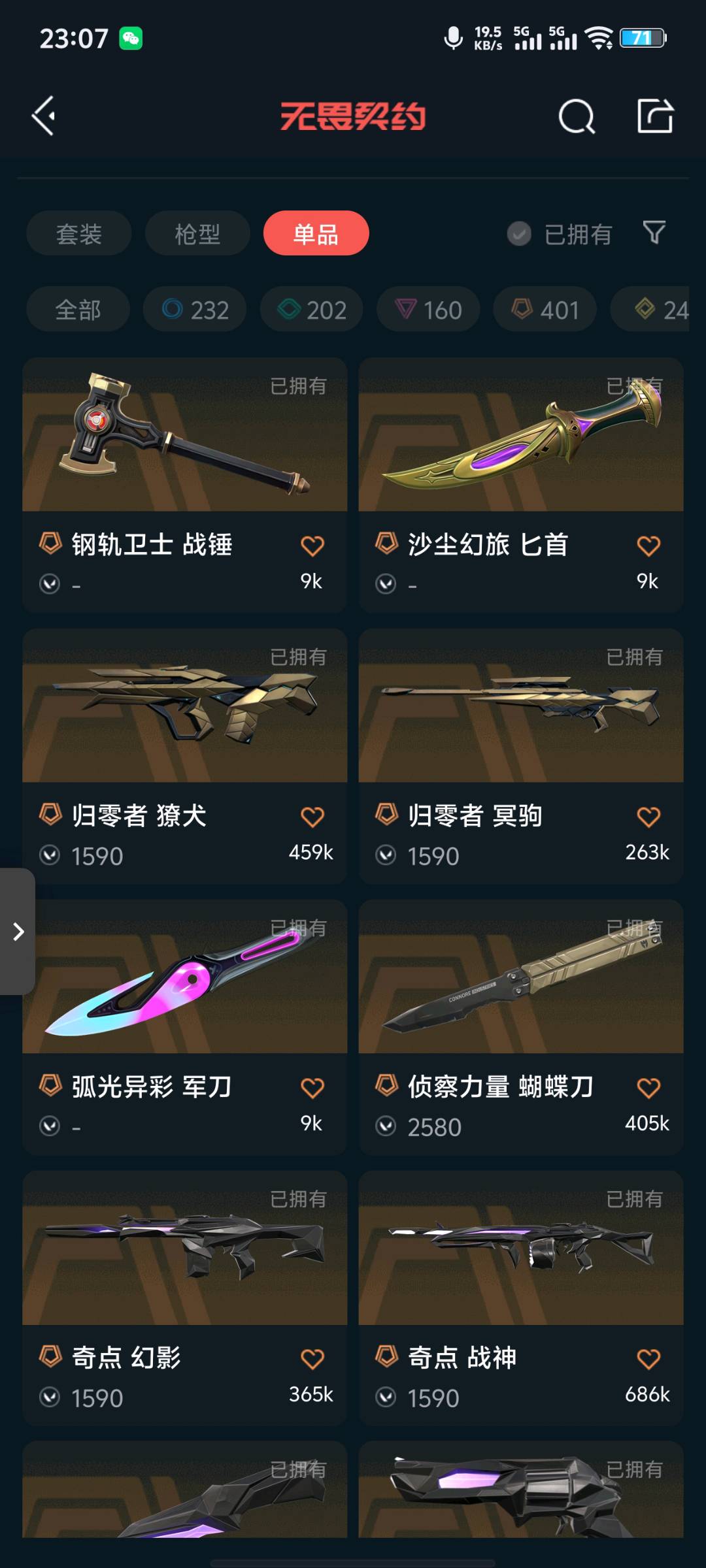 • 武器皮肤数量: 71