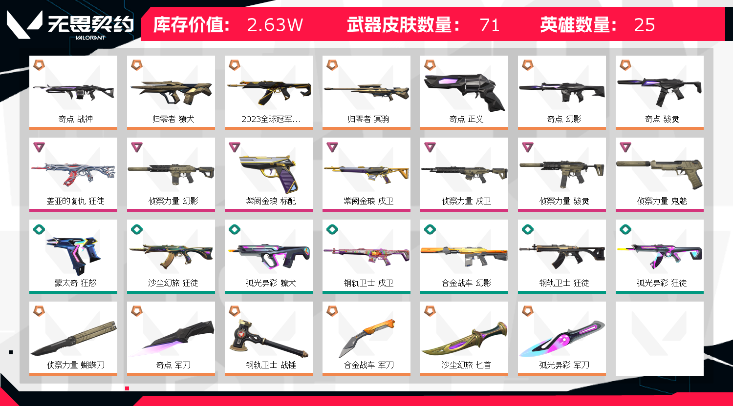 • 皮肤资产价值: 26275