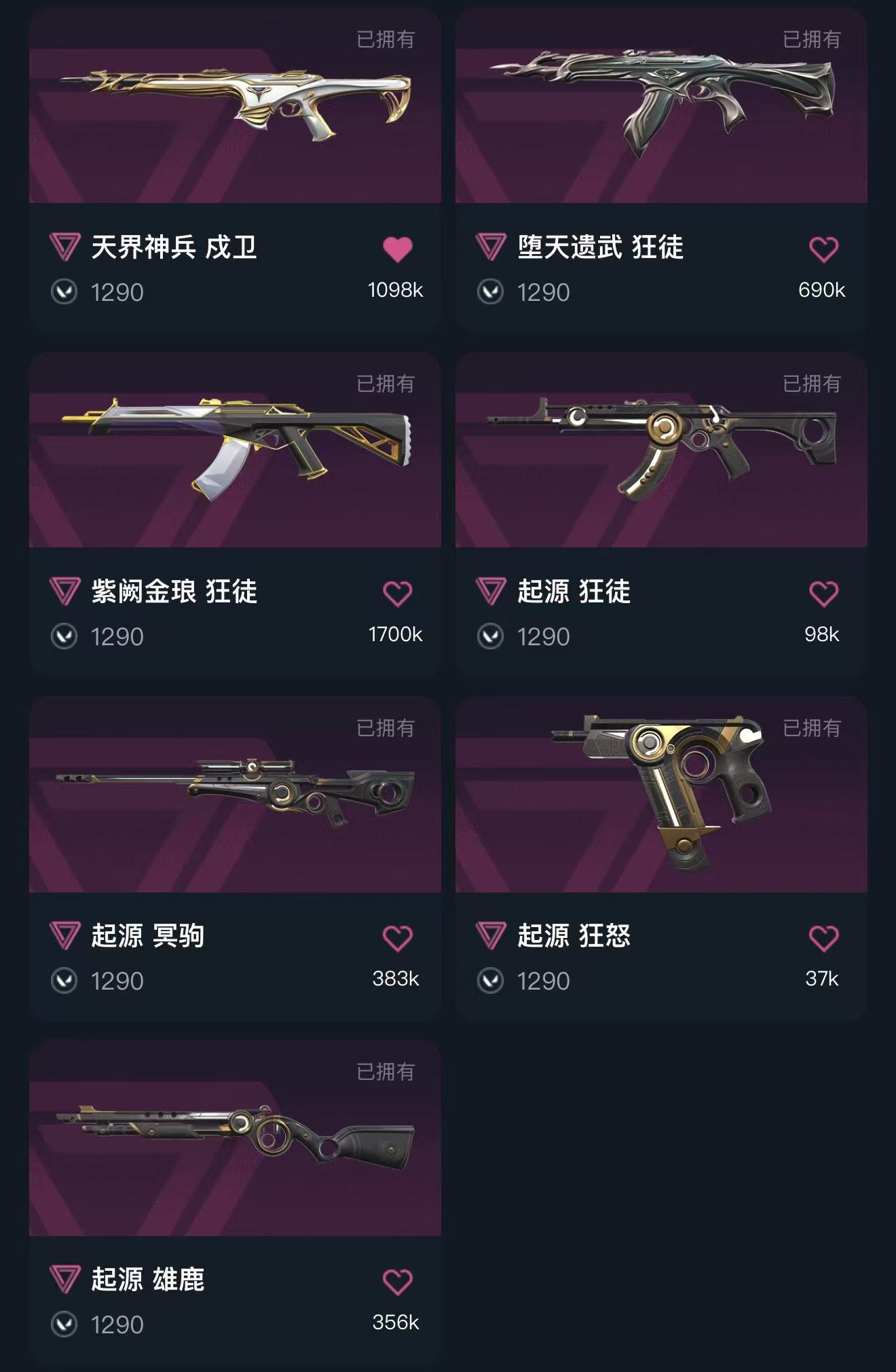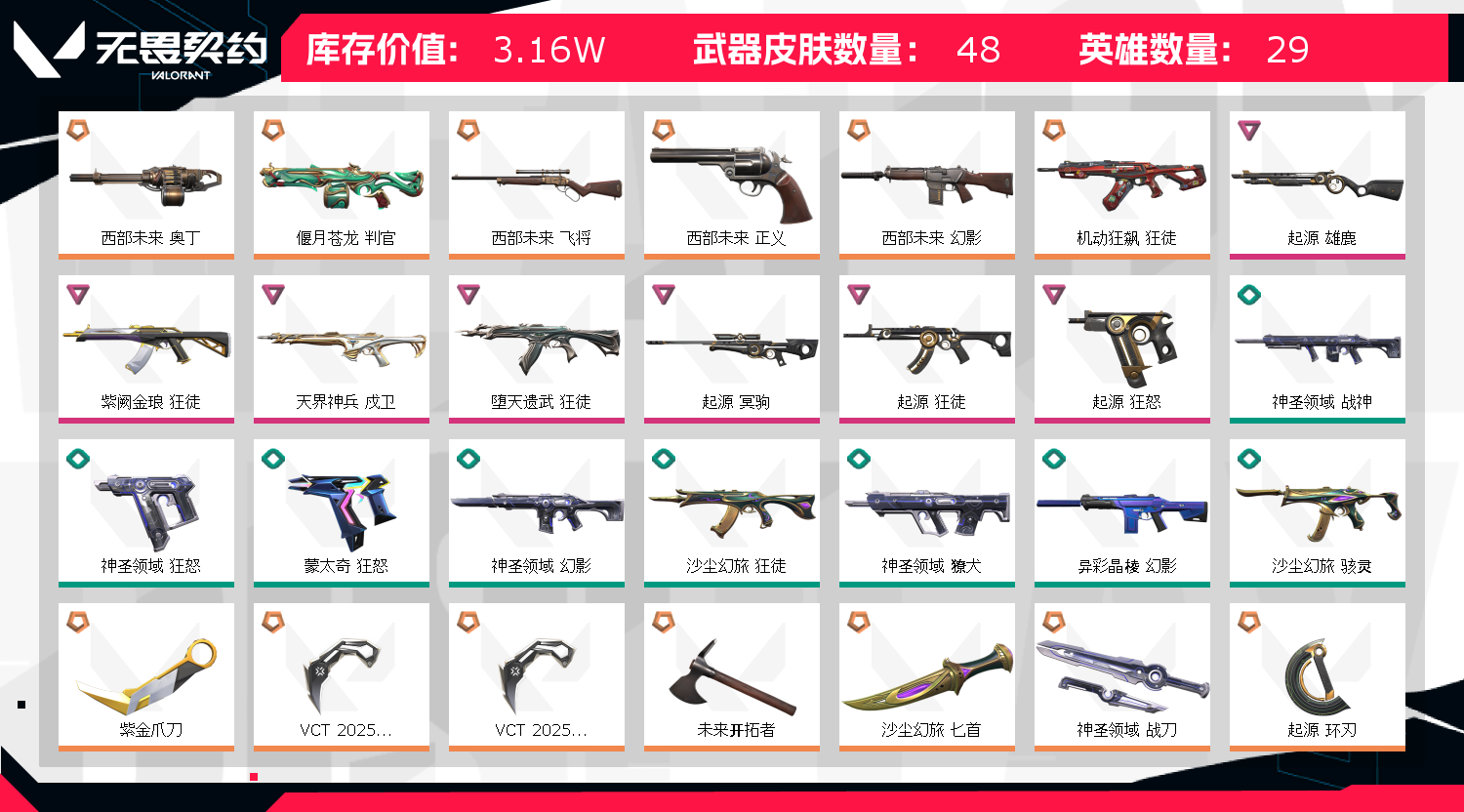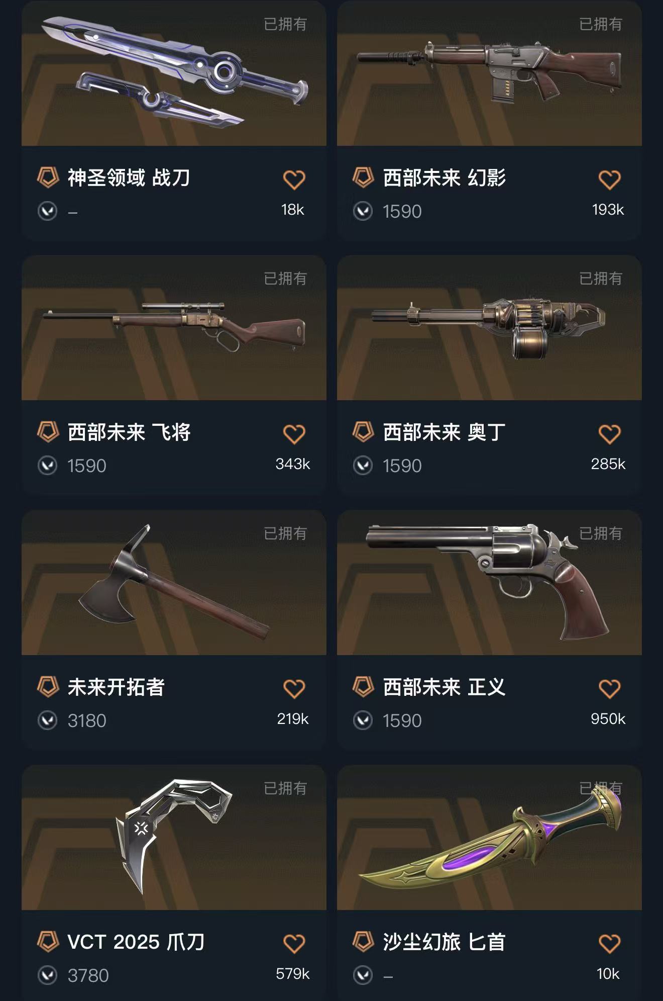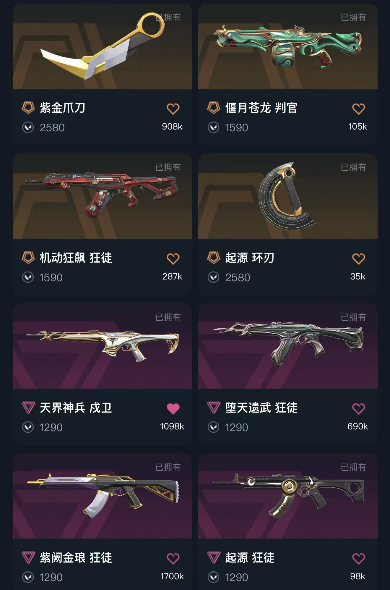 冻结秒解✨西部未来套✨VCT2025爪刀✨紫金爪刀✨起源套✨紫金狂徒✨堕天遗武狂徒