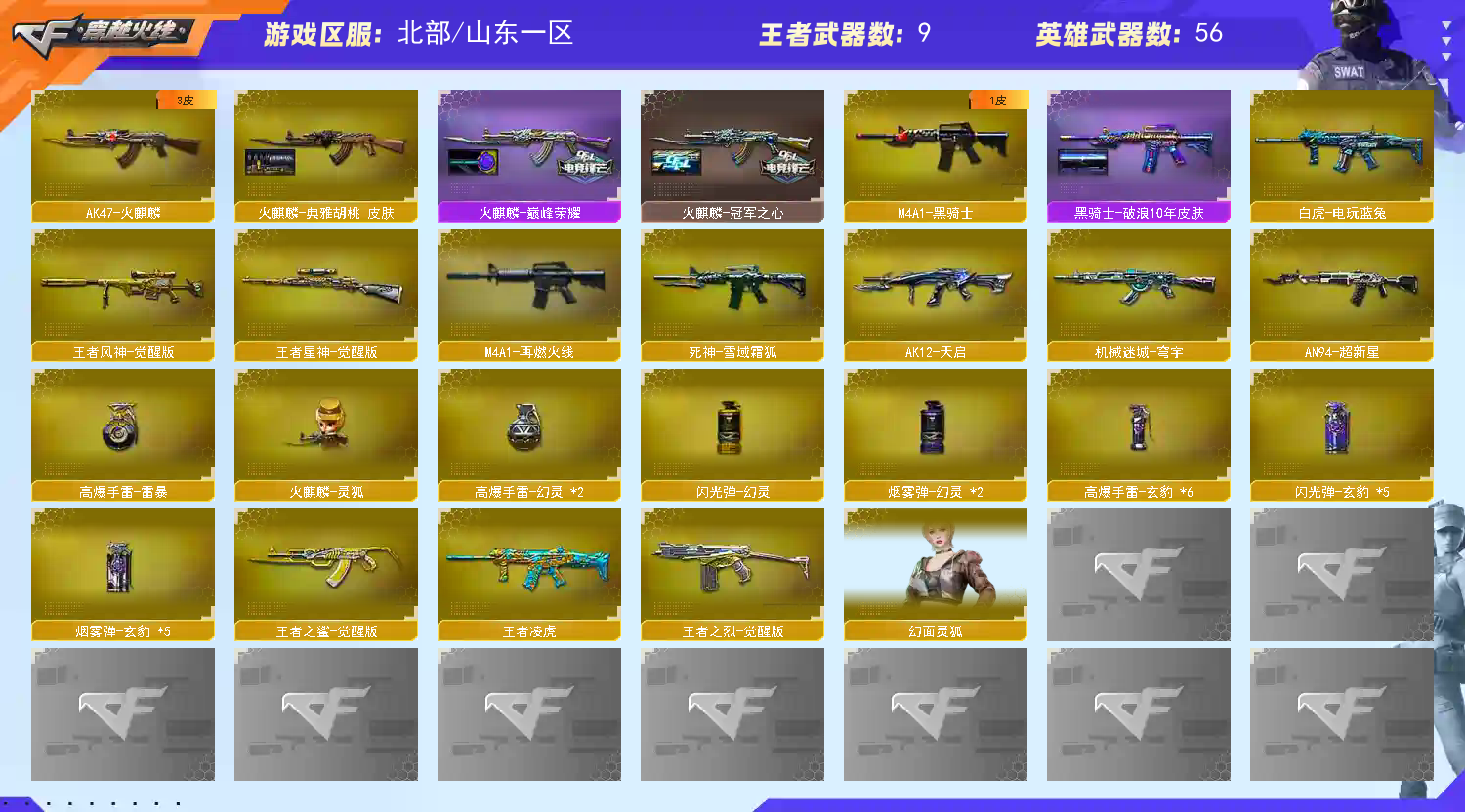 • 游戏区服:穿越火线 / 北部 / 山东一区