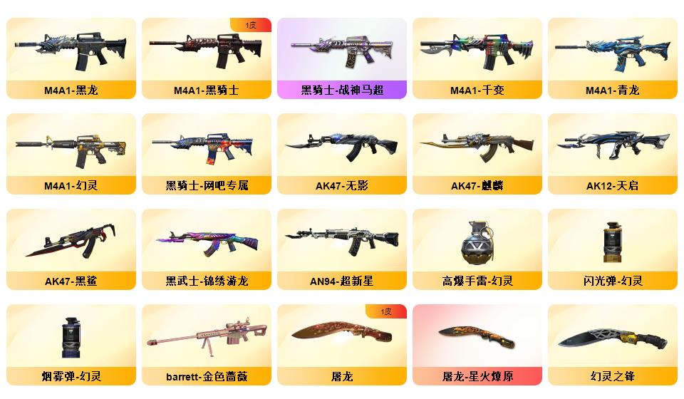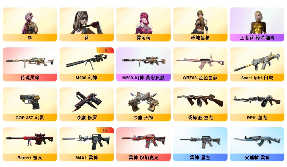 ④防春♥传说灵眸♥幻神+黄忠皮♥6烈龙+枪娘暗刃+死眼♥②COP+⑥副武器