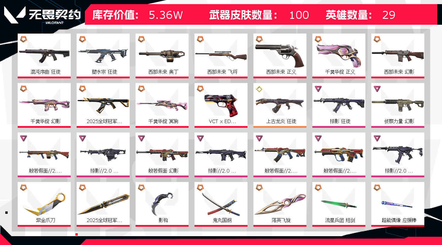 首页 > 租号大厅 > 无畏契约-wegame > wegame/wegame > 5.3w库存/2025冠军赛套/西部未来全套/千灵华绽全套/塑水宗狂徒/上古龙炎 狂徒/紫金爪刀