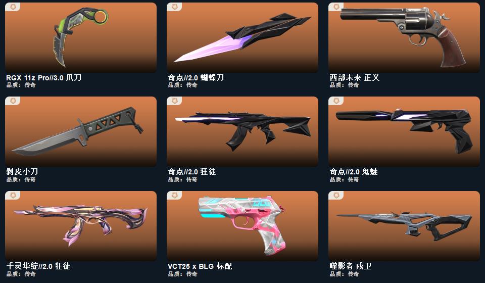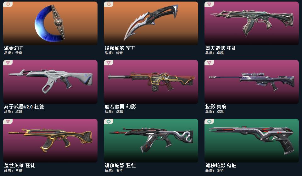 奇点//2.0套装 ,诡秘蛇影 军刀,剥皮小刀,RGX 11z Pro//3.0 爪刀,源始幻刃,奇点//2.0 蝴蝶刀,千灵华绽//2.0 狂徒,掠影 冥驹,幻心猎手 鬼魅