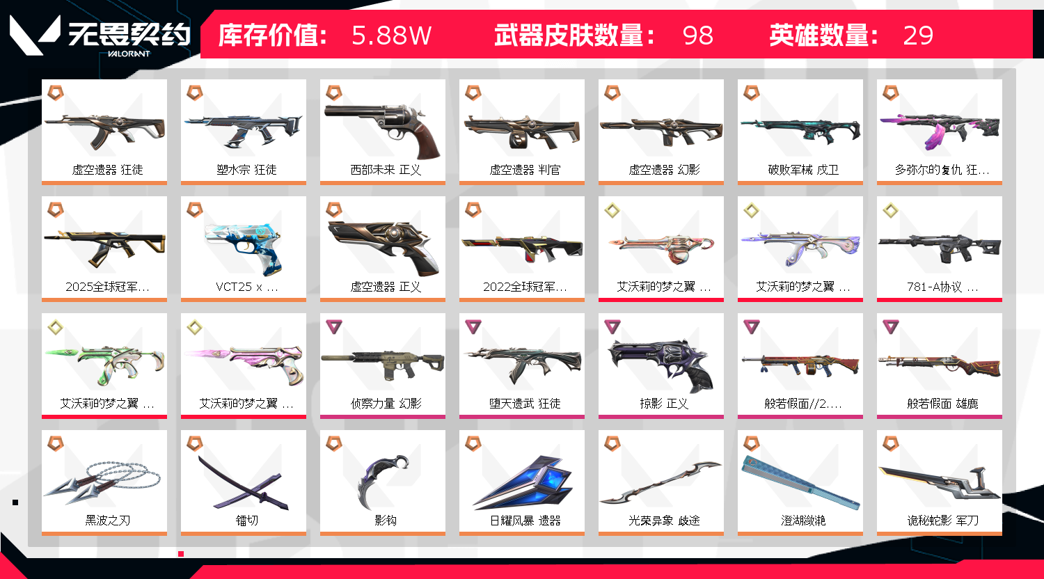 6w库存,艾沃莉黑波歧途,7刀扇子热门刀皮,22,25冠军