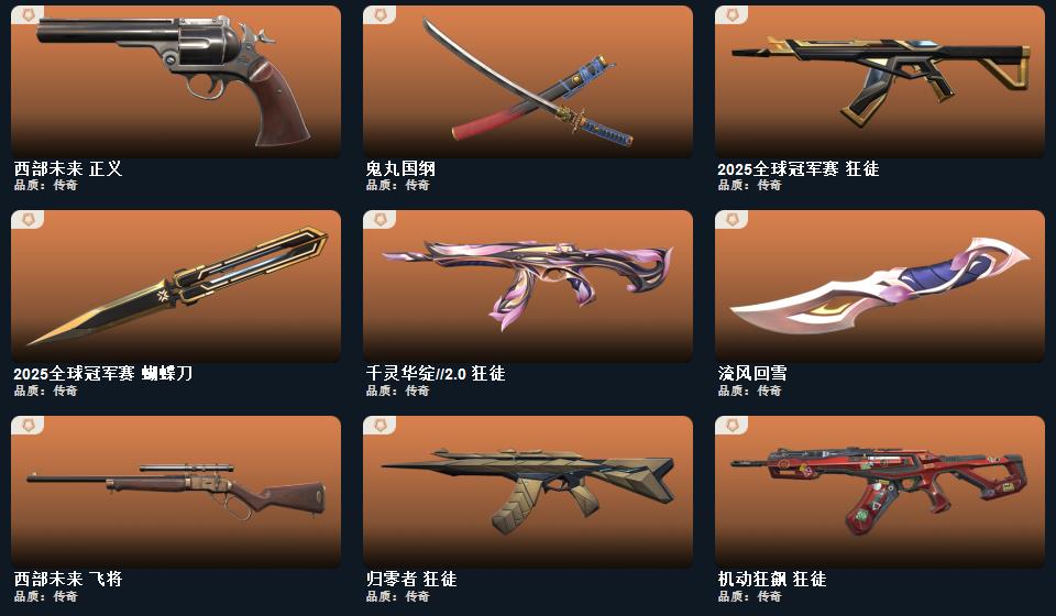 2025全球冠军赛套装,千灵华绽//2.0套装,般若假面//2.0套装,流风回雪,2025全球冠军赛 蝴蝶刀,神圣领域 战刀,鬼丸国纲,无畏契约GO!第一卷 苦无,弧光异彩 军刀,千灵华绽//2.0 狂徒,堕天遗武 冥驹