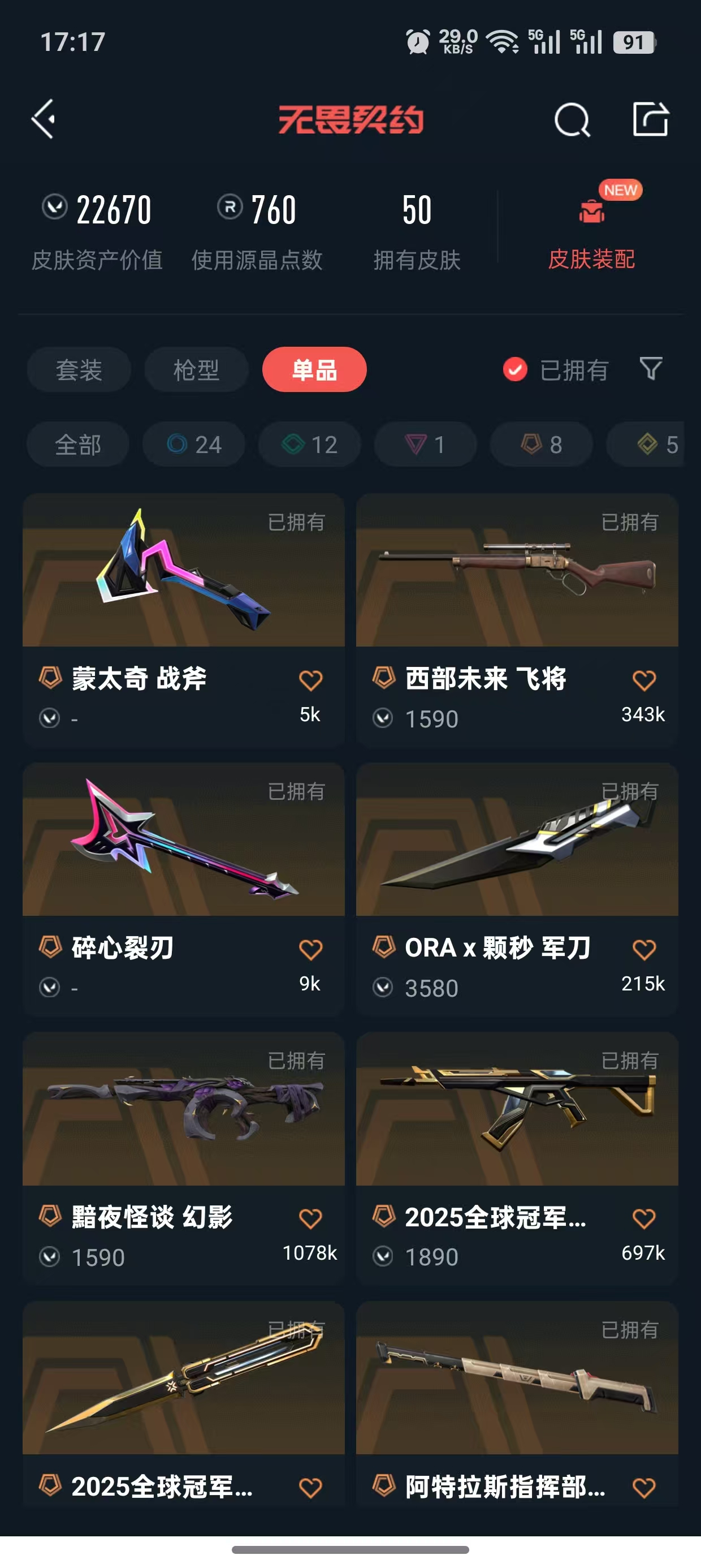 • 皮肤资产价值: 22670