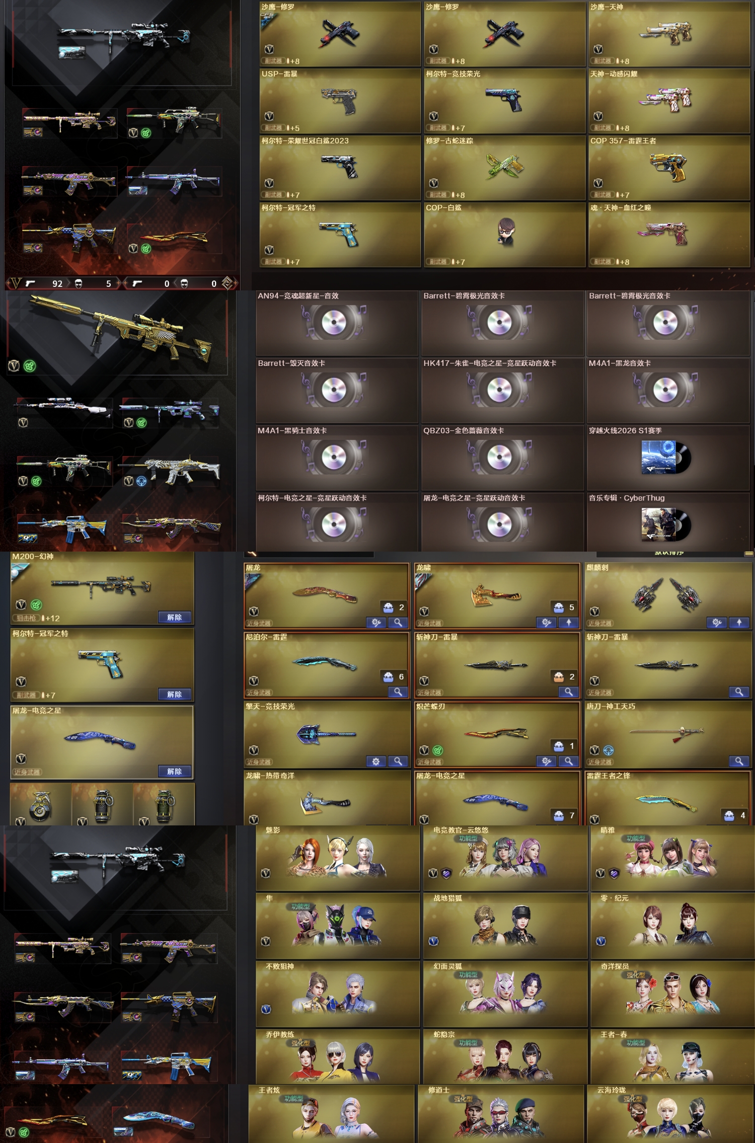 女同heart全皮,幻神2023世冠heart,QBZ女团逐光皮三件套,星神,冠军之特,白虎,毁灭荣耀三件套,炽芒蝶刃,隼,王者炫,王者风神;USP-雷暴,柯尔特-荣耀世冠白鲨2023,柯尔特-冠军之特,炽芒蝶刃,Knife-冠军之刃,隼,电竞教官-云悠悠,