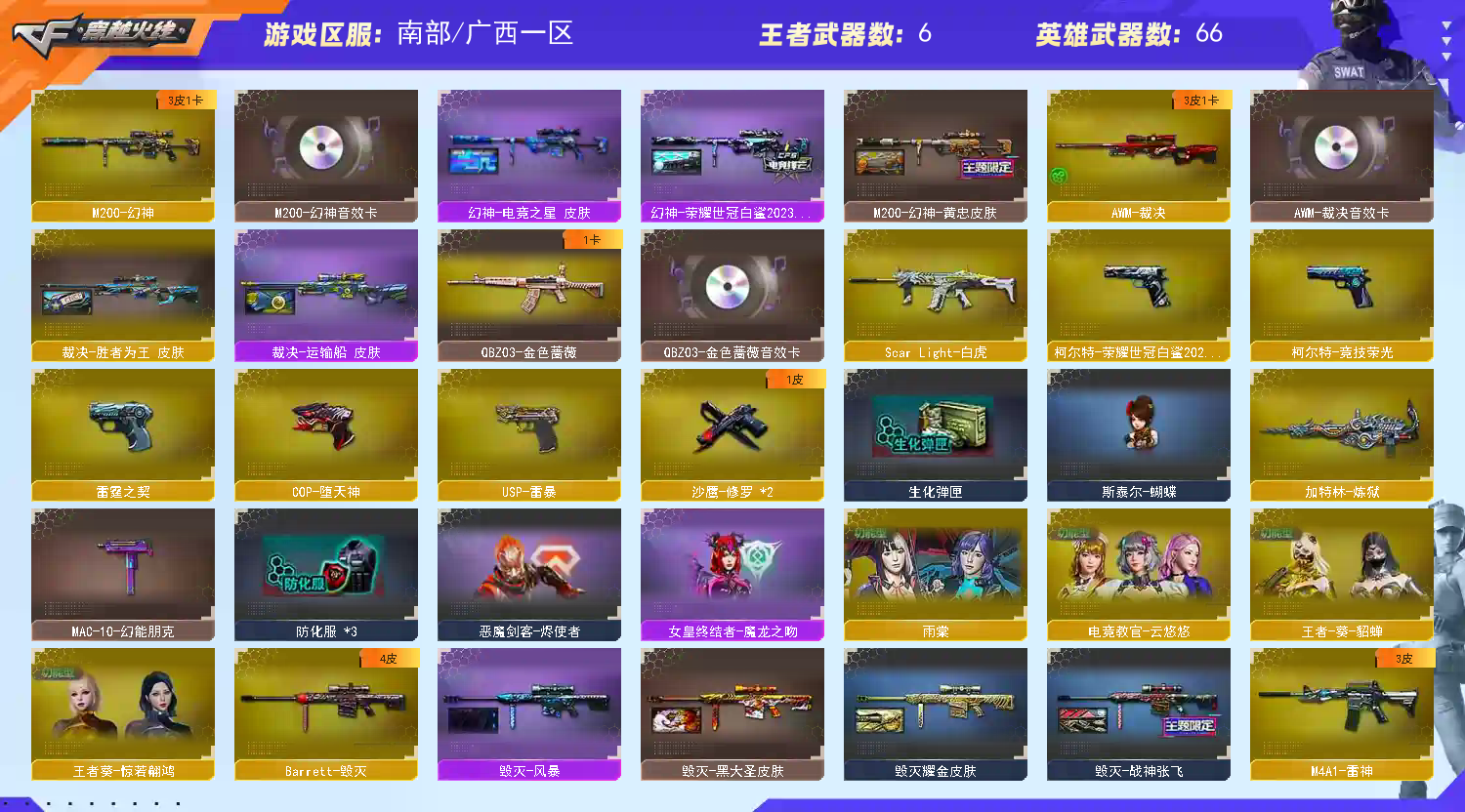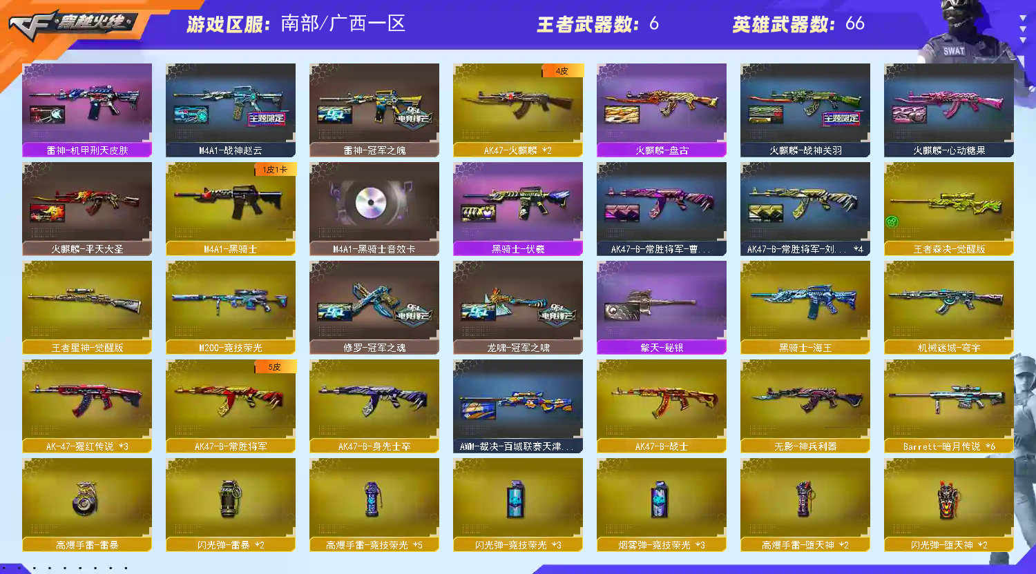 • 游戏区服:穿越火线 / 南部 / 广西一区