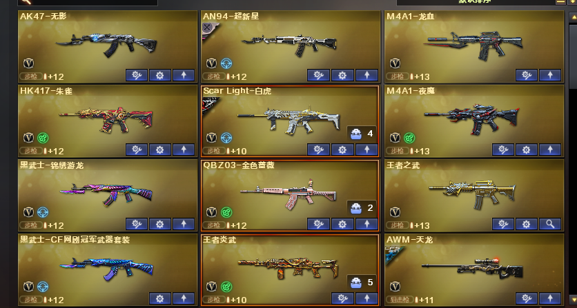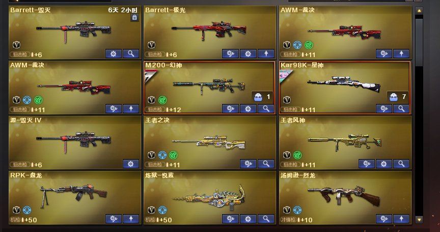 基础道具热门武器 夜魔投掷套雷暴投掷套雷霆投掷套;炽芒蝶刃,传说艾莉莎,RPK-盘龙,QBZ03-金色蔷薇,M200-幻神,Scar Light-白虎,Kar98K-星神,