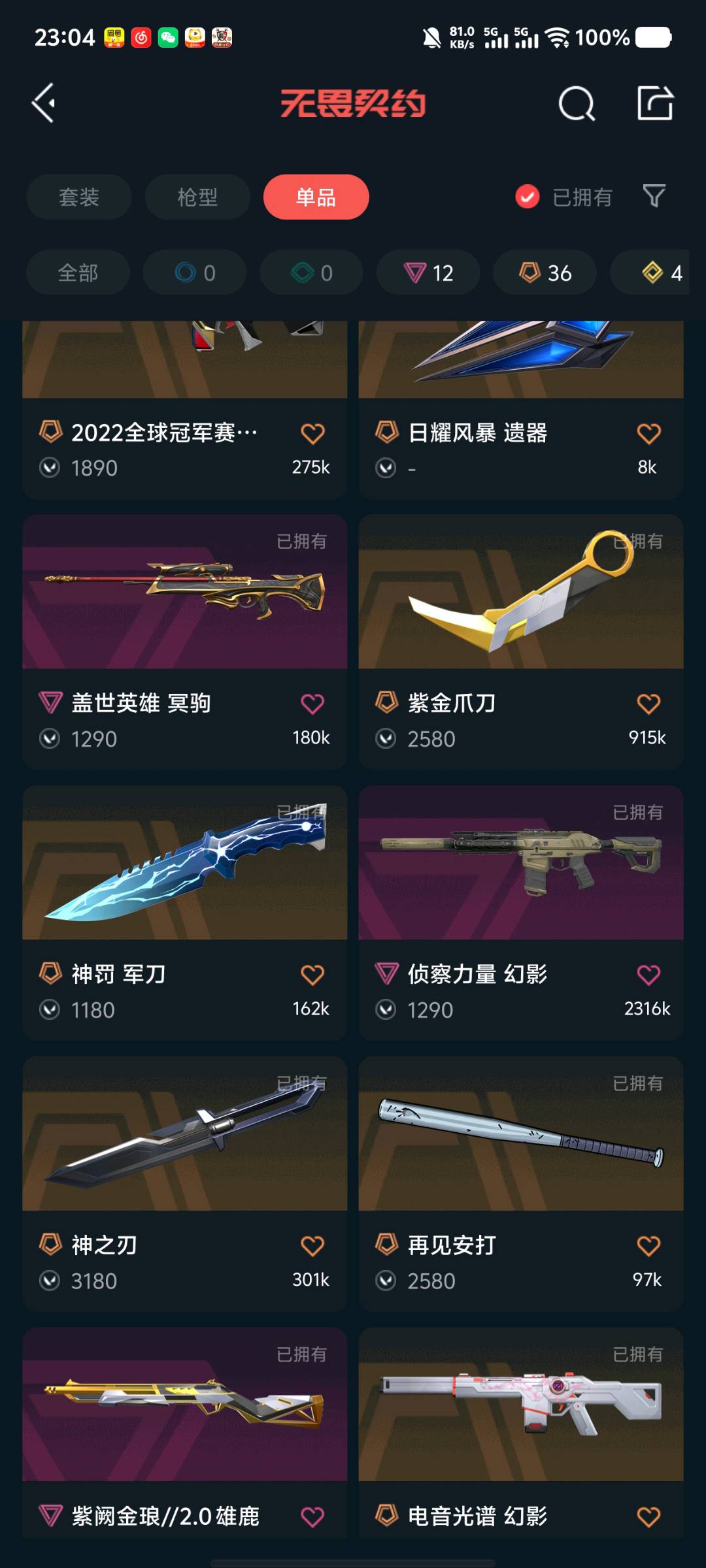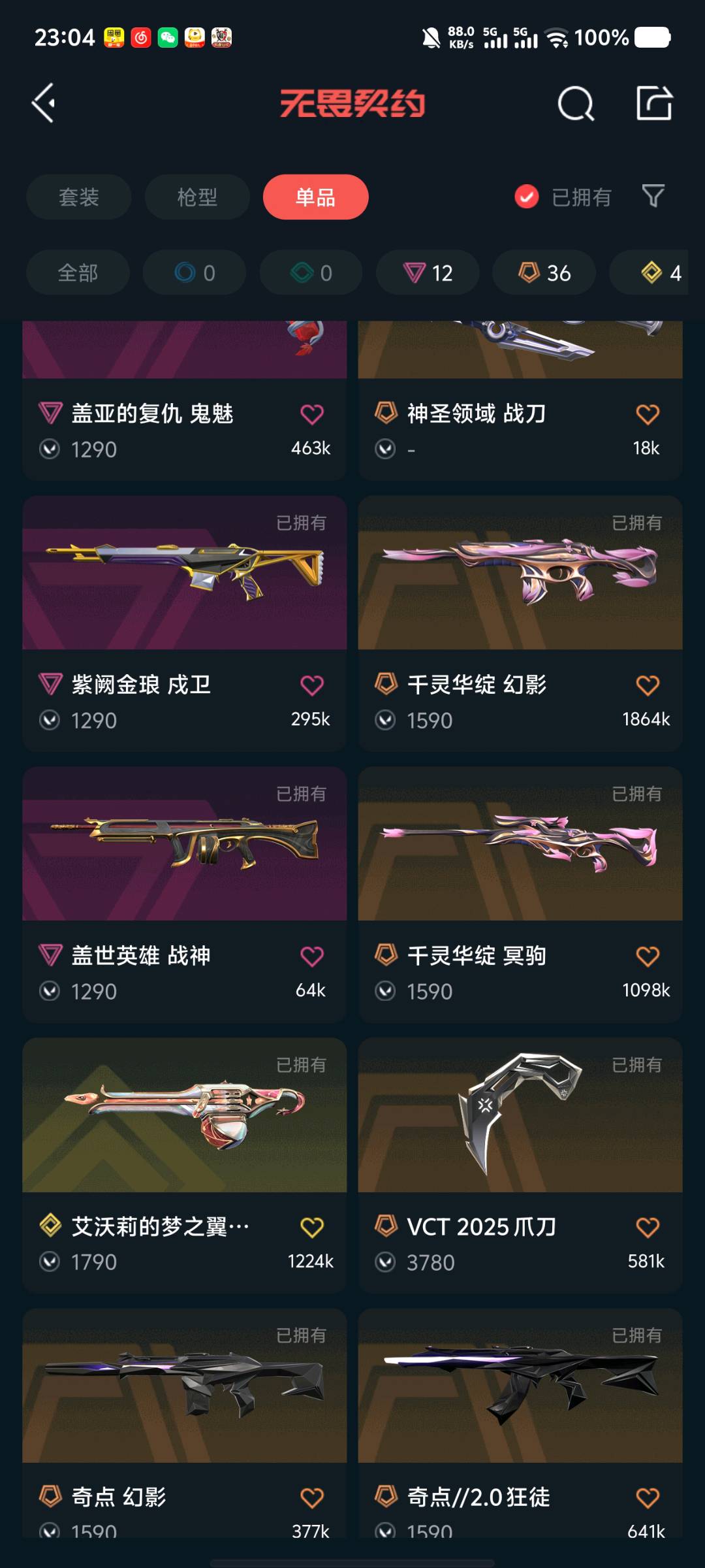 详细看商品图;艾沃莉的梦之翼 奥丁,黑波之刃,紫金爪刀,镭切,VCT 2025 爪刀,上古龙炎 判官,掠影 狂徒,