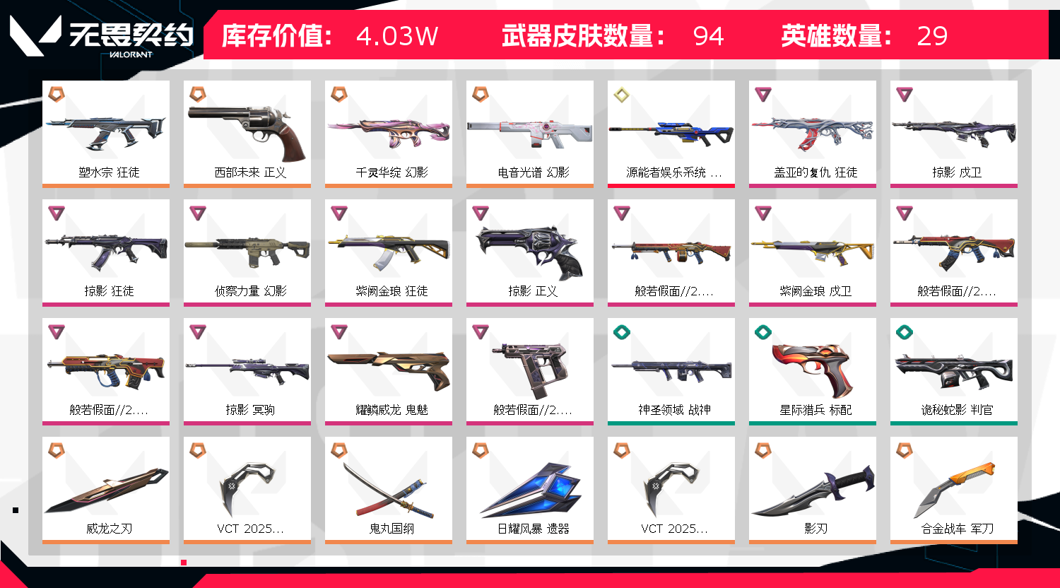 VCT2025爪刀❤️光谱侦查幻影❤️威龙套❤️掠夺1.0❤️还有很多皮肤❤️