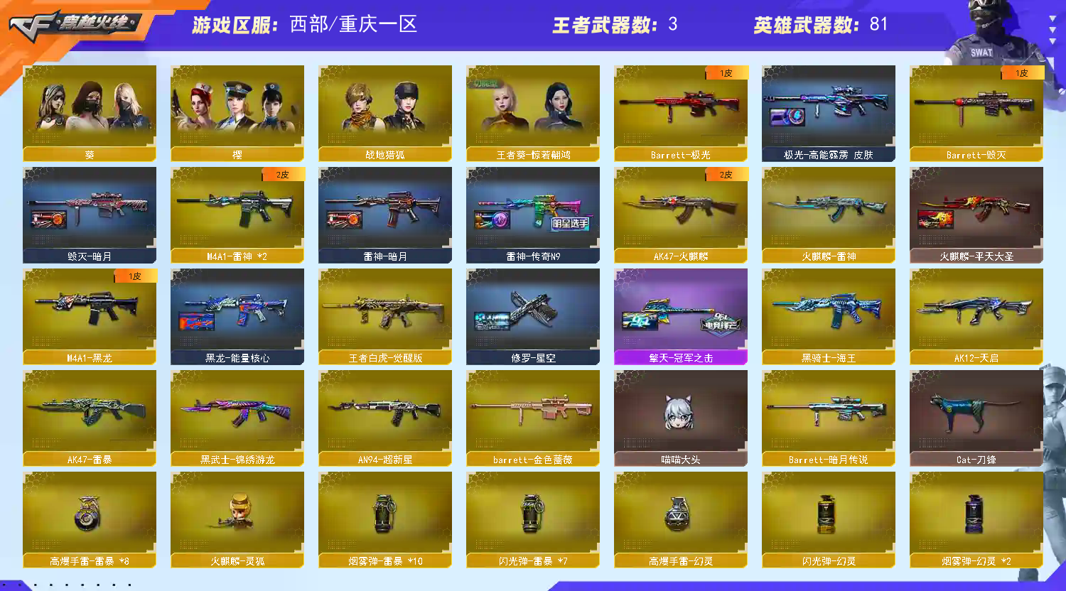• 游戏区服:穿越火线 / 西部 / 重庆一区