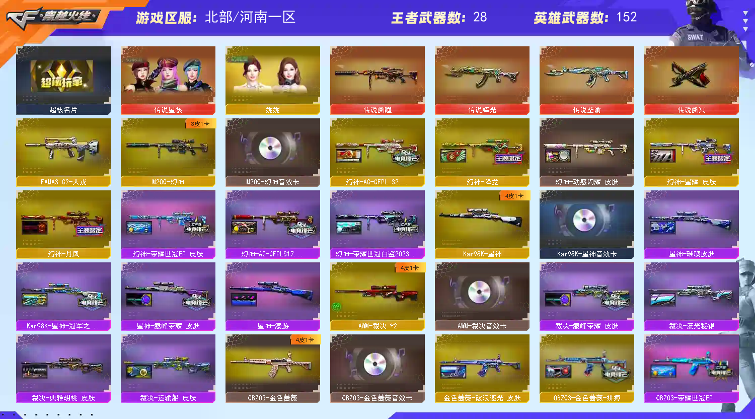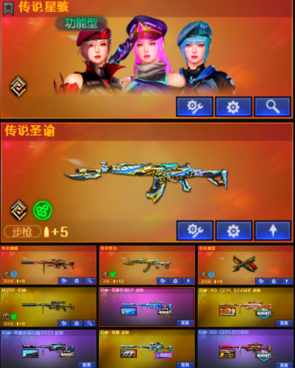 传说星骇幽瞳♥幻神EP8皮三件套♥星神裁决5皮三件套♥20把高质量手枪♥qbz白虎满配三件套♥蝴蝶刀;USP-雷暴王者,柯尔特-荣耀世冠白鲨2023,传说幽冥,炽芒蝶刃,传说星骇,妮妮,RPK-盘龙,