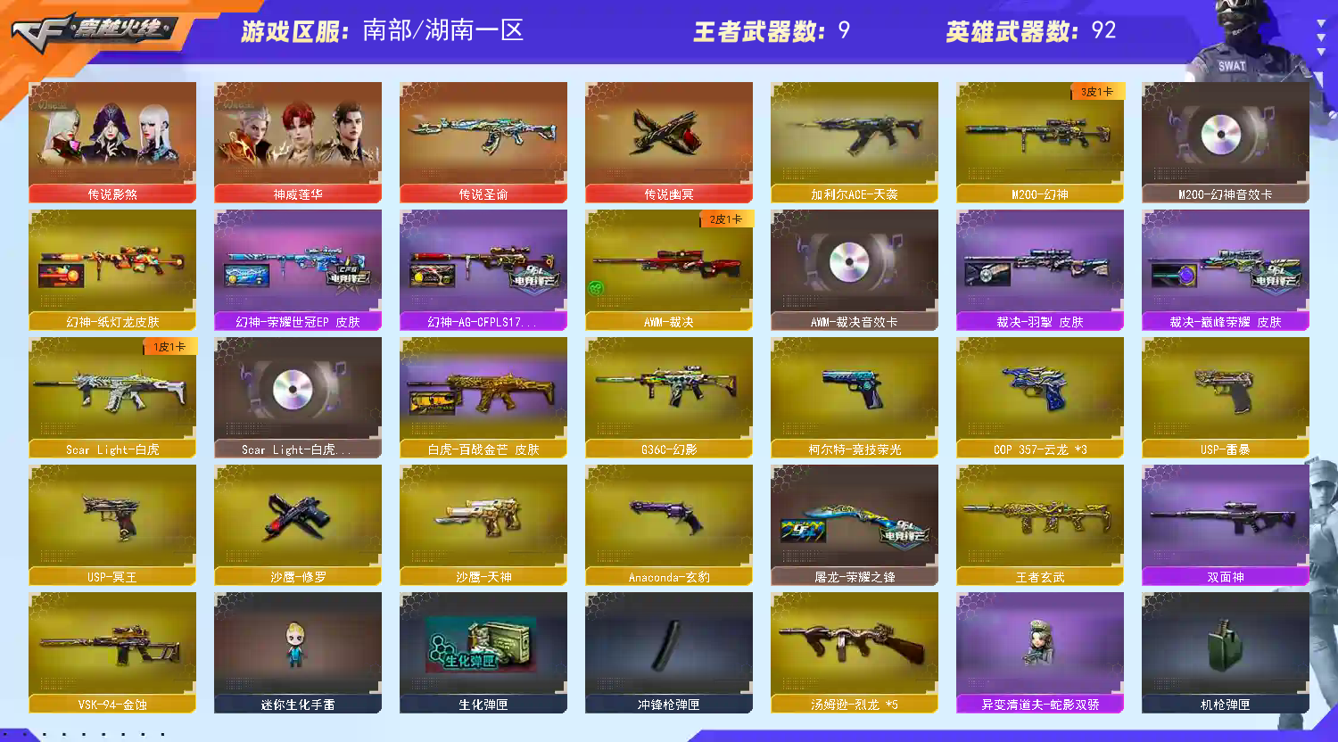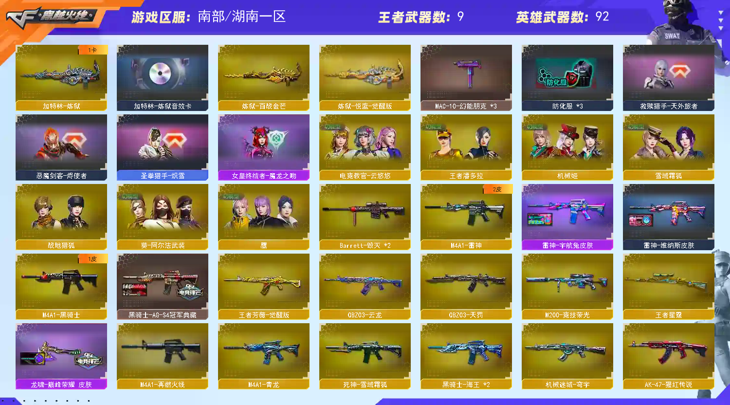 编号:HNN352南部湖南一区✅爆破性价比✅四防神威莲华+传说圣谕幽冥+幻神5件套+6烈炽火炎龙✅裁决4件套+加利尔幻影金蚀天罚云龙✅ 稀有武器:传说圣谕、传说幽冥、M200幻神、M200竞技荣光、VSK94金蚀、炼狱百战金芒、炼狱、炼狱悦蓝、烈龙X6、加利尔ACE天袭、雷神、黑骑士、M4A1青龙、HK417朱雀、Scar白虎、QBZ天罚、G36C幻影、QBZ云龙、无影神兵利器、黑武士锦绣游龙、超新星热带奇洋、金色蔷薇古蛇迷踪、死神雪域霜狐、机械迷城穹宇、HK417朱雀电竞之星、天罚斗烈龙驹、源火麒麟、超新星悦享、毁灭X2、裁决、修罗、天神、USP雷暴、柯尔特竞技荣光、USP冥王、COP云龙X3、修罗古蛇迷踪、Anacnda玄豹、修罗斗烈龙驹、屠龙、龙啸、麒麟刺、尼泊尔雷霆、擎天竞技荣光、擎天云海游龙、云龙扇、龙啸热带奇洋、丛林匕首玄豹、麒麟刺百战金芒、屠龙电竞之星、扳手量子之心、屠龙斗烈龙驹、龙啸烈火龙威、M4A1赤狱骑士、M4A1苍鸣雷神、AK47竞魂无影、AWM昌龙、Barrett碧霄极光、AK47再燃战线、M4A1再燃战线、轻型军用手斧再燃战线 稀有角色:四防神威莲华(生存本能/捕食者之眼/佣兵觉醒/生化背包变更)、四防传说影煞(减少掉落伤害/减少闪光效果/免疫队友炸弹伤害/副武器自动装弹)、四防电竞教官云悠悠、机械姬、鹰、不败狙神、零纪元、太空指挥官、战地猎狐、斗烈龙驹、幻面灵狐、葵阿尔法武装、奇洋探员、蛇隐宗、王者潘多拉、雪域霜狐、云海玲珑 音效卡:M200幻神音效卡、炼狱音效卡、裁决音效卡、死神雪域霜狐怀旧音效卡、炼狱百战金芒庆典舞曲音效卡、裁决音效卡、白虎音效卡/盛典舞曲音效卡、麒麟刺百战金芒盛典舞曲音效卡、Barrett碧霄极光音效卡、屠龙电竞之星音效卡、HK417朱雀电竞之星竟星悦动音效卡、屠龙斗烈龙驹斗烈音效卡、天罚烈龙驹斗烈音效卡、 稀有皮肤:幻神荣耀世冠EP皮肤/AGCFPLS17冠军皮肤/纸灯笼皮肤、雷神紫凛皮肤/诺拉皮肤/源计划2.0专属皮肤/宇航兔皮肤/维纳斯皮肤、裁决巅峰荣耀皮肤/羽掣皮肤、龙啸巅峰荣耀皮肤、白虎百战金芒皮肤、修罗百战金芒皮肤/CFSTAR皮肤X3、毁灭英雄计划皮肤/SVCFPLS16冠军皮肤/秦师皮肤、屠龙荣耀之锋皮肤、黑骑士AGS4冠军典藏皮肤 王者武器:王者雷影、王者芳薇、王者玄武、王者风势、王者之势、王者星霆、王者冰锋、炫金天龙 小人枪及特殊武器:HK417朱雀蛇隐宗、M4A1雷神精英刀锋、火麒麟零纪元、M82A1水枪不败狙神、裁决雪莉杨、MK5炽火炎龙、异变清道夫蛇影双骄、斯泰尔幻面灵狐、金刚伞电玩红兔、CAT、AWM灵狐15周年嘉年华X2、巴雷特赏金猎人、COP旗袍、降世魔童、魔能飞环曼陀罗 投掷武器及套装:竞技荣光套X2、云海游龙套、云龙套、热带奇洋套、古蛇迷踪套、玄豹套X3、音乐手雷X2、肥皂手雷、迷你生化手雷、迷你生化手雷黑桃战神X2、;USP-雷暴,传说幽冥,传说影煞,电竞教官-云悠悠,G36C-幻影,M200-幻神,Scar Light-白虎,