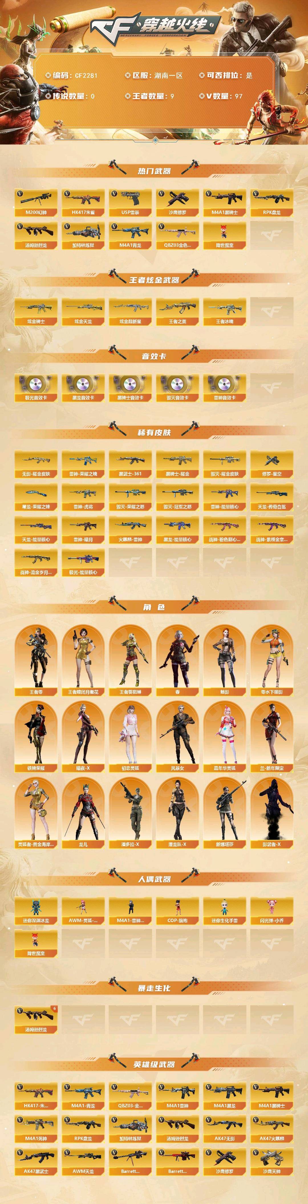 • 游戏区服:穿越火线 / 南部 / 湖南一区