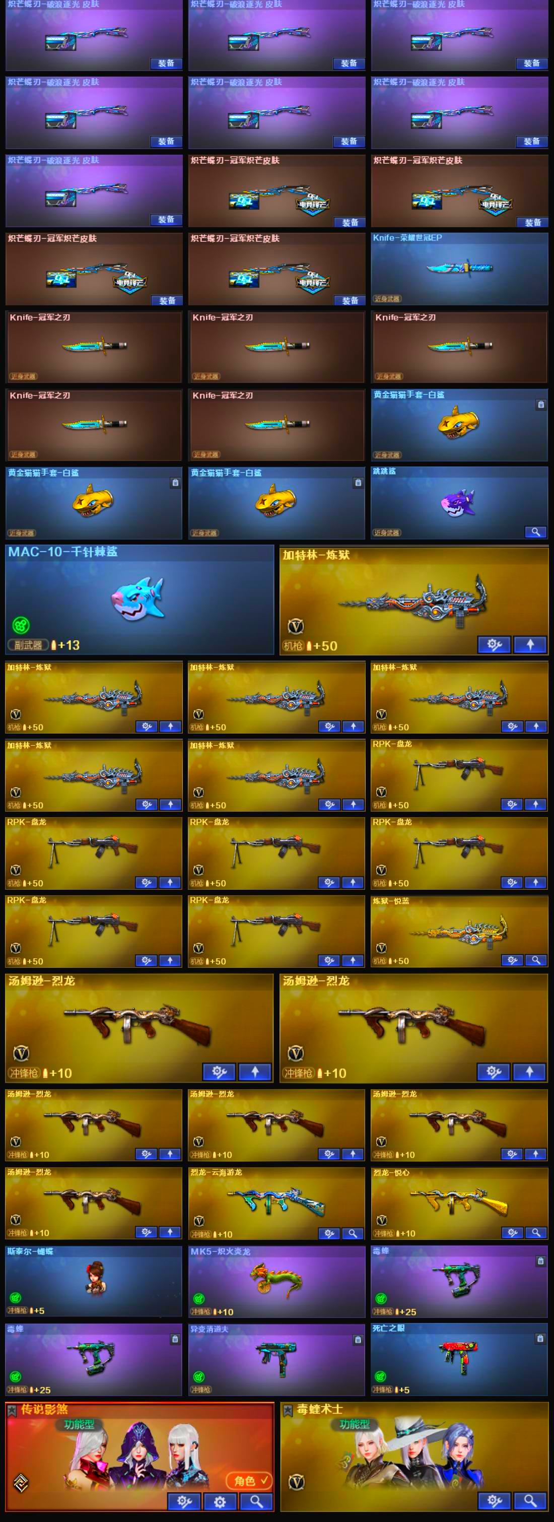 神威莲华传说影煞金狮子六盘六烈幻神20皮三件套星神三件套 裁决三件套50把副武器12把蝴蝶刀