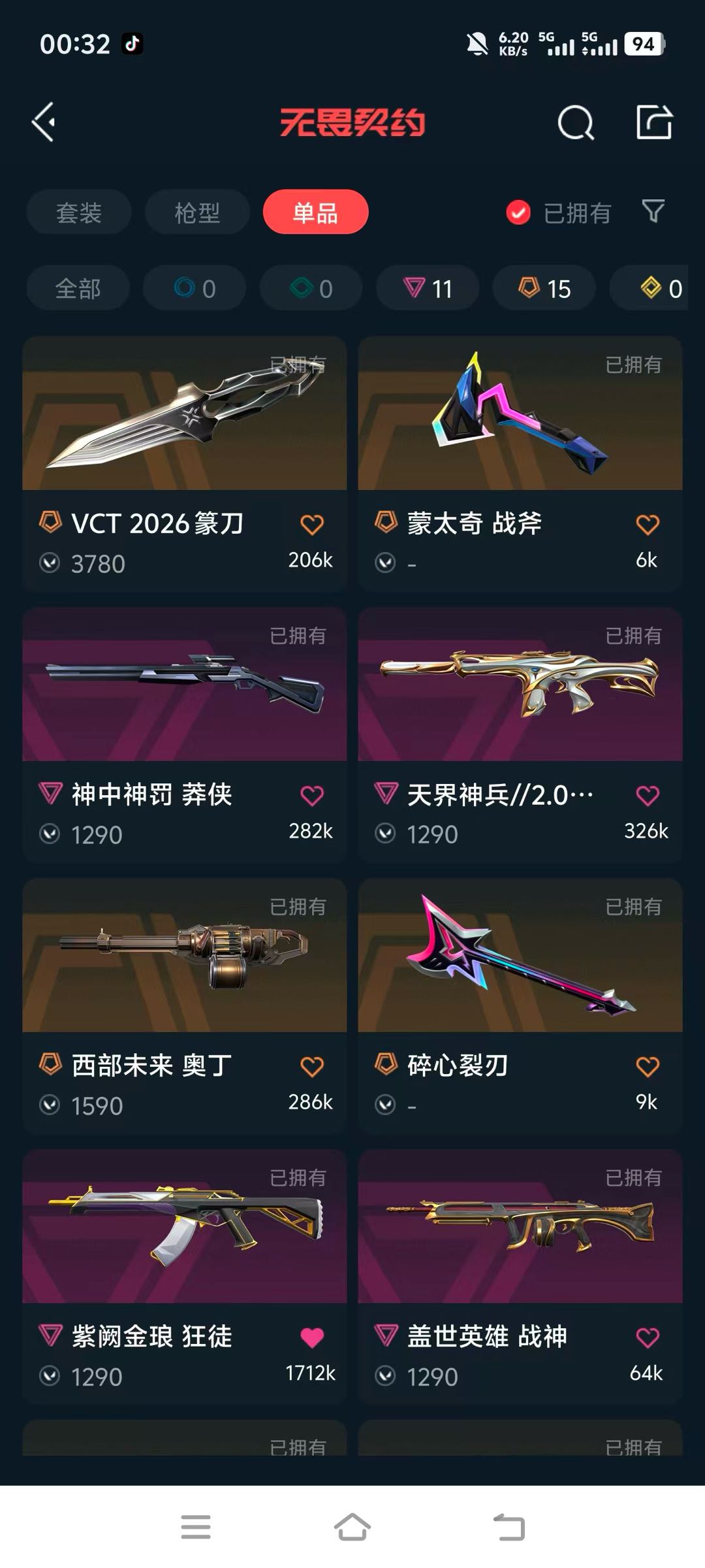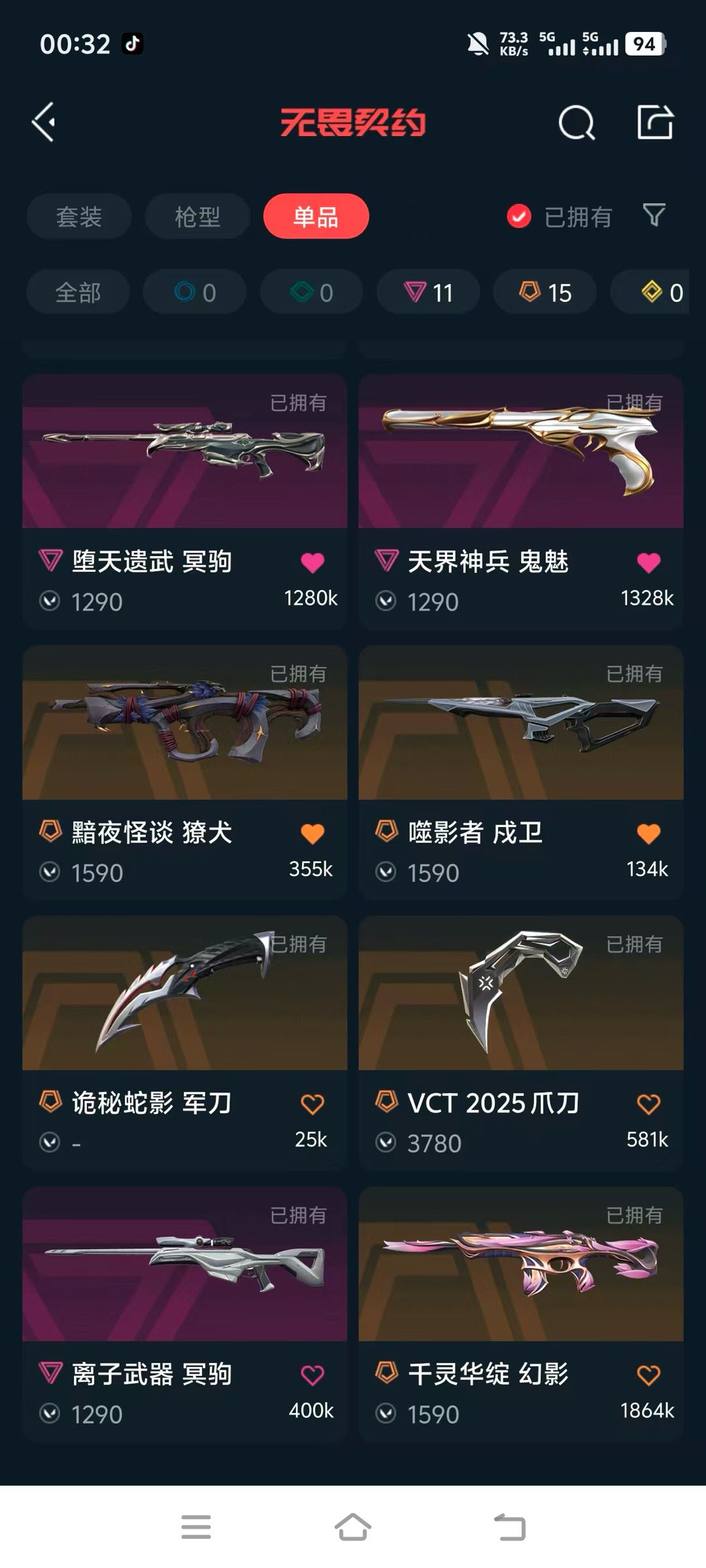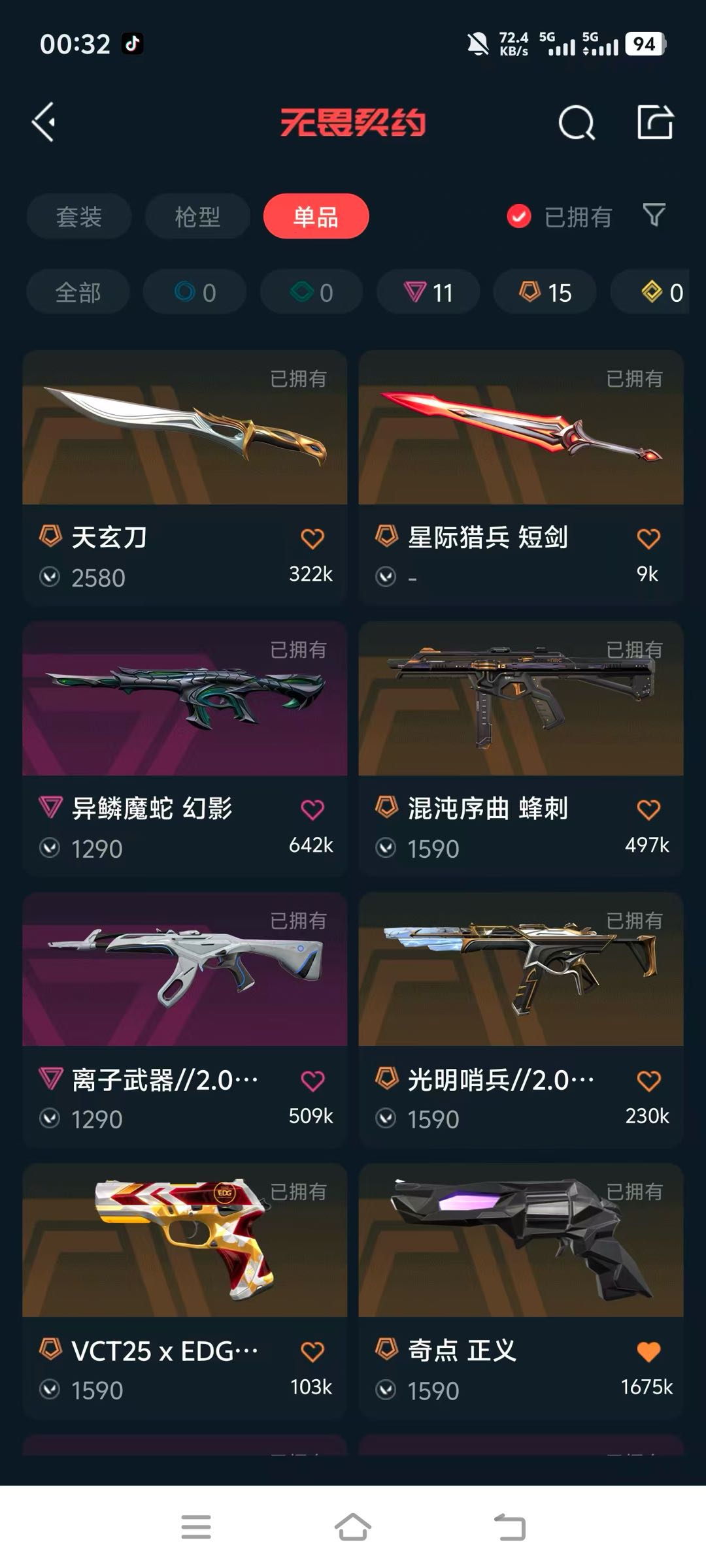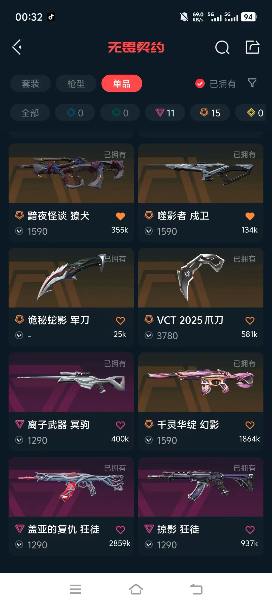 VCT2025爪刀 VCT25xEDG标配 异鳞魔蛇幻影 盖亚的复仇狂徒 混沌序曲蜂刺