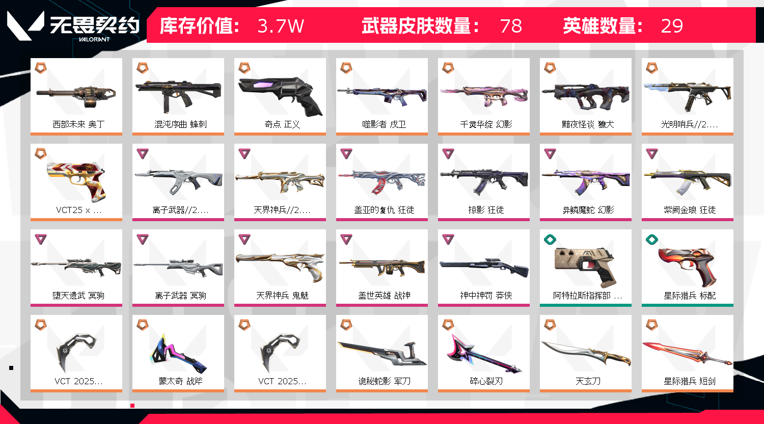 • 皮肤资产价值: 37050